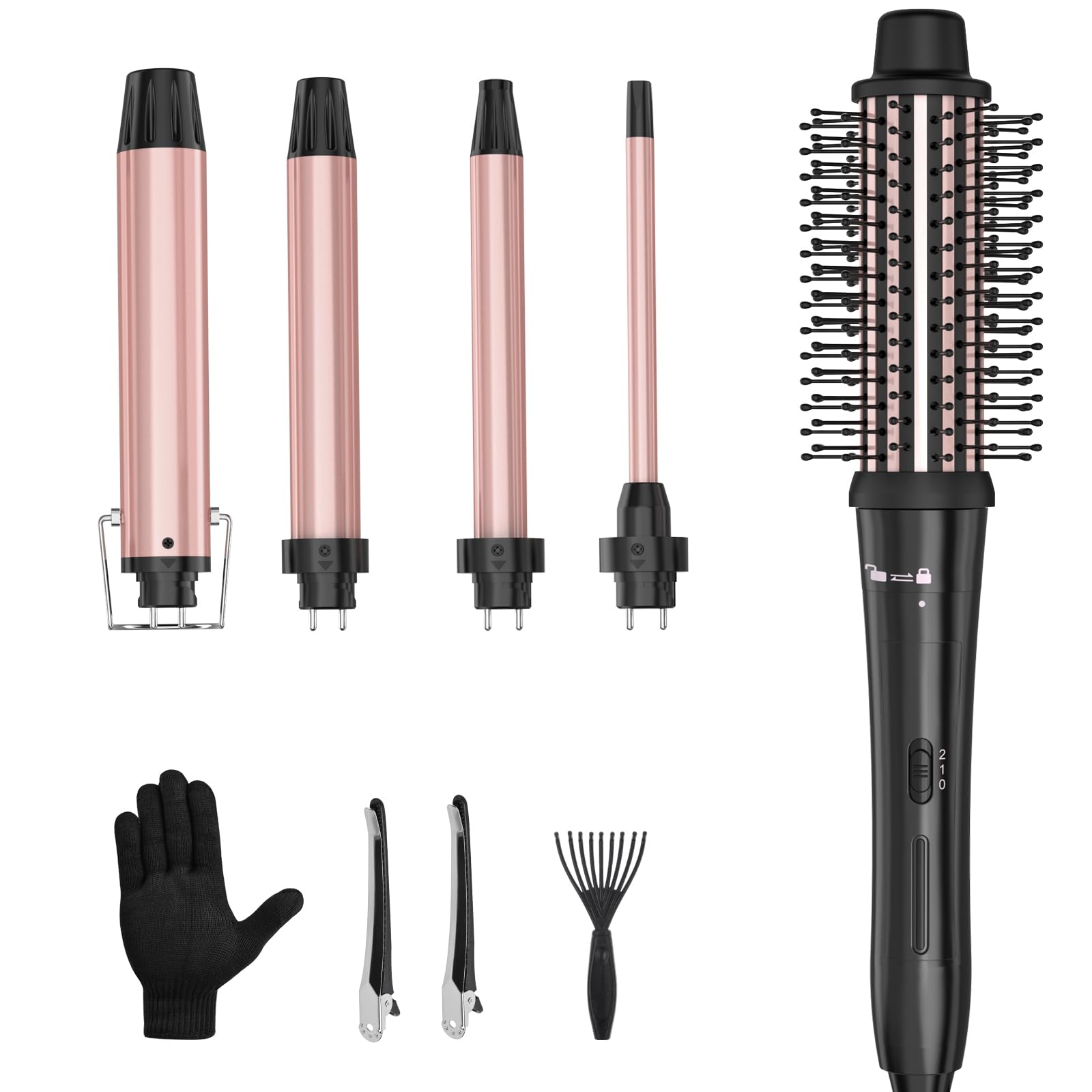 Curling Wand Curling Iron Brush and Curling Iron Set 0.35 to 1.5 Inch Thermal Curling Brush Hot Styler Tool for Hair Curler (0.35-1.5inch) Rose Gold