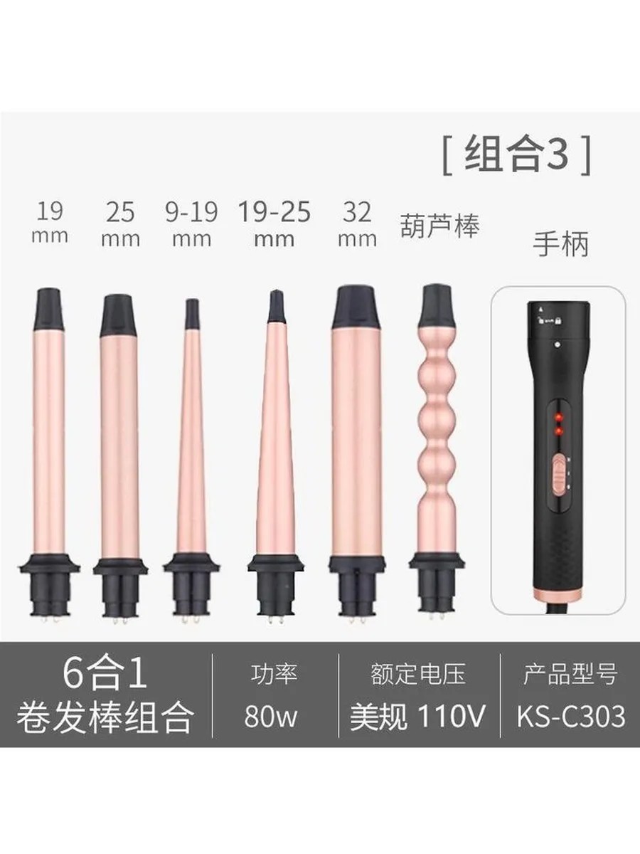 6-in-1 Curling Iron (Rose Gold, US 110V)