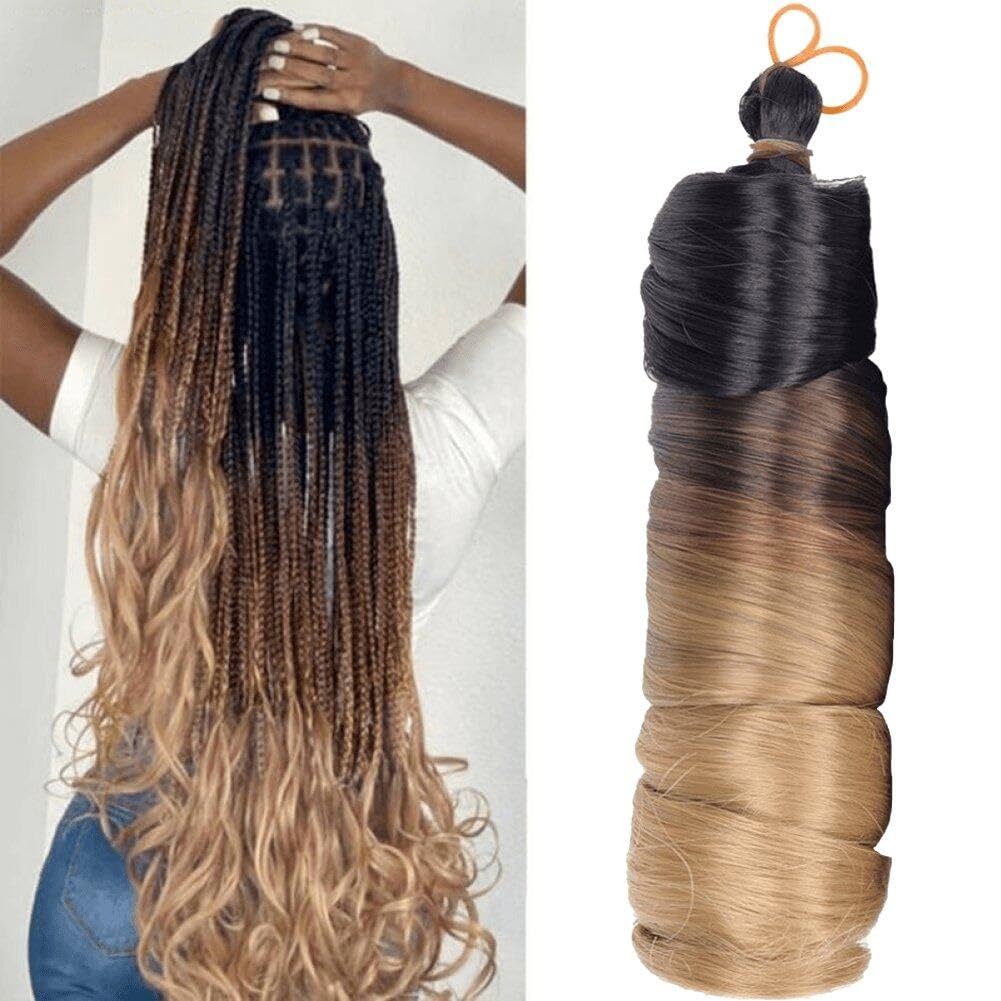 Curly Braiding Hair 24 Inch French Curls Synthetic Hair Extensions Curl French Crochet Braid Hair Synthetic Pre Stretched Bouncy Braid Hair Extensions 1pc Yellow