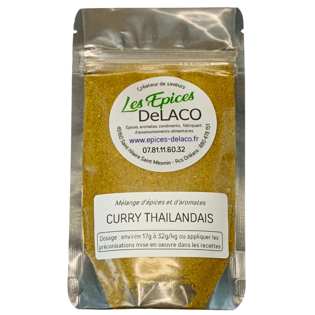CURRY THAILANDAIS 200g L . mélanges d'épices, herbes, aromates, condiments, piments pour viandes, poissons, légumes, marinades, salades, barbecue - Les EPICES DeLACO