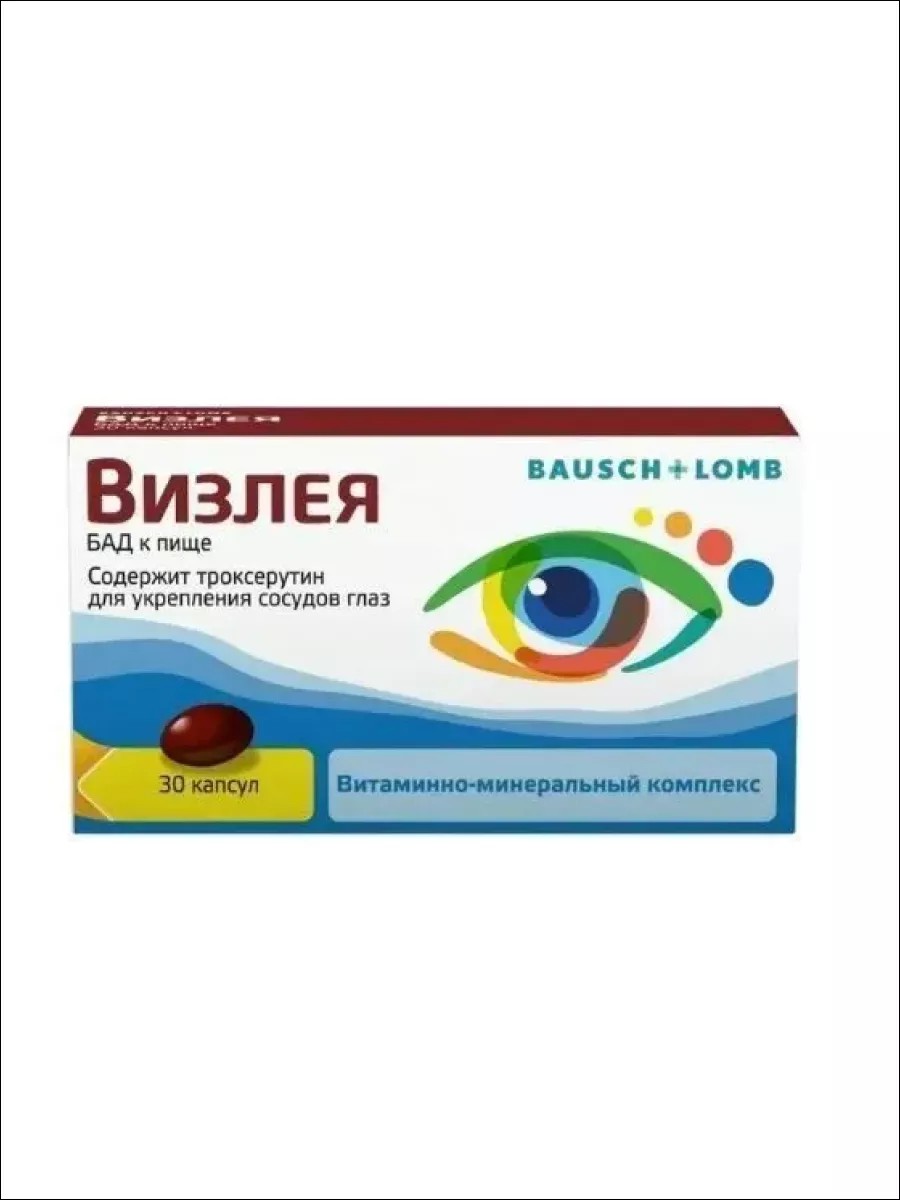 Визлея - биологически активная добавка к пище в капсулах, предназначенная для поддержки здоровья глаз. Она содержит комплекс витаминов, антиоксидантов и микроэлементов, необходимых для сохранения зрения и предотвращения различных заболеваний глаз, таких как катаракта, дегенерация сетчатки и глаукома. Визлея - это эффективный способ поддержания здоровья глаз, который рекомендуется людям, которые хотят сохранить качество зрения на длительное время.СоставРыбий жир, цинка глюконат, L-аскорбиновая кислота, троксерутин (экстракт плодов Софоры японской), экстракт из цветков бархатцев мелкоцветных, ниацинамид, DL-альфа-токоферола ацетат, магния сульфат моногидрат, меди глюконат, пиридоксина гидрохлорид, тиамина гидрохлорид, рибофлавин, цианокобаламин 0,1% (в мальтодекстрине), фолиевая кислота, натрия селенит, соевый лецитин, кремния диоксид, желатин, глицерин (Е422), сорбитол (Е420), Е172Способ примененияПринимают внутрь, во время еды, взрослым назначают по 1 капсуле 1 раз/сутки, продолжительность приема - 1 месяц.ПоказанияВ качестве биологически активной добавки к пище - источника каротиноидов (лютеина, зеаксантина), рутина, дополнительного источника витаминов группы В (В1, В2, ниацин, В6, фолиевой кислоты, В12), витаминов С и Е, микроэлементов (меди, селена и цинка), содержащей полиненасыщенные жирные кислоты омега-3 (докозагексаеновую и эйкозапентаеновую кислоты)