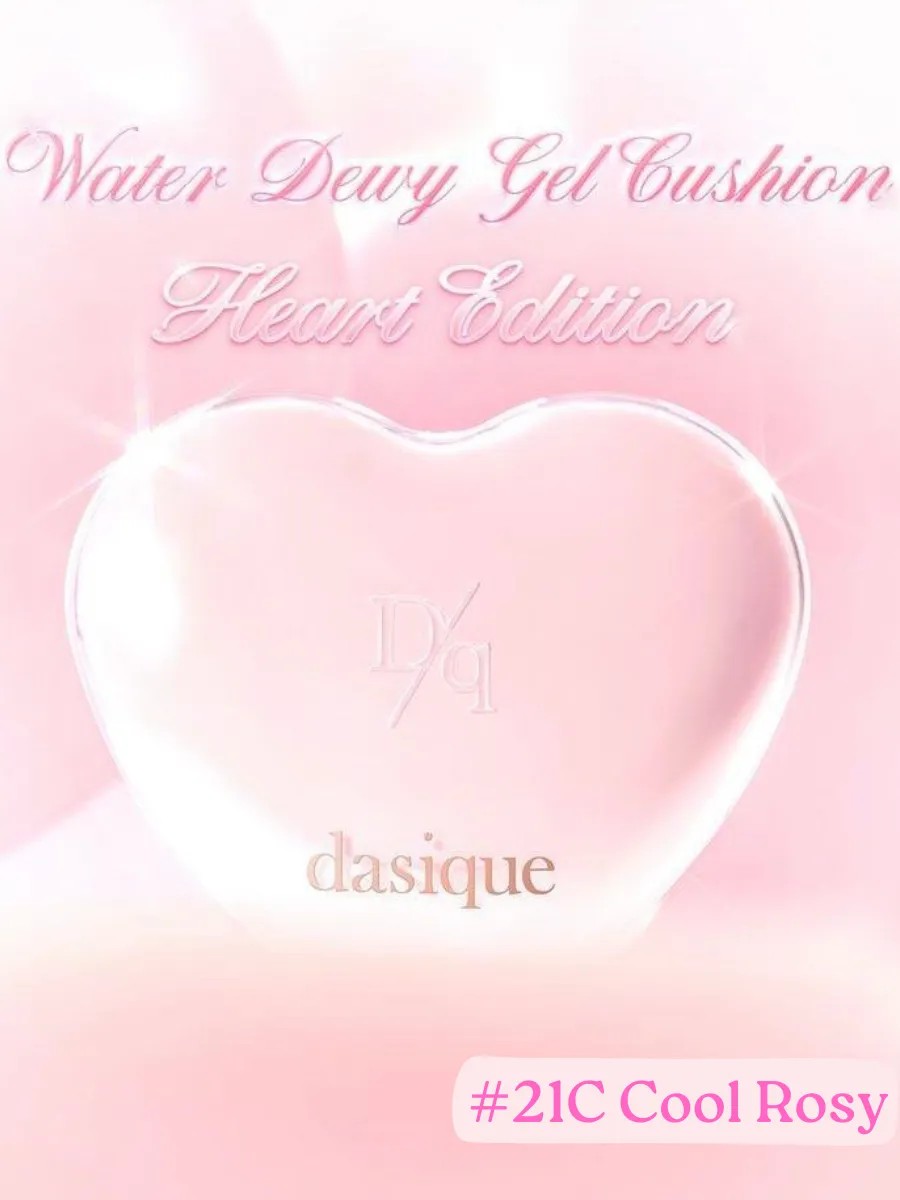 WATER DEWY GEL COUCHION/HEART EDITION SPF 50/PA++++ by Dasique (10g) in shade 21C COOL ROSY is a lightweight, hydrating cushion with a pink undertone, designed for fair skin with cool undertones.