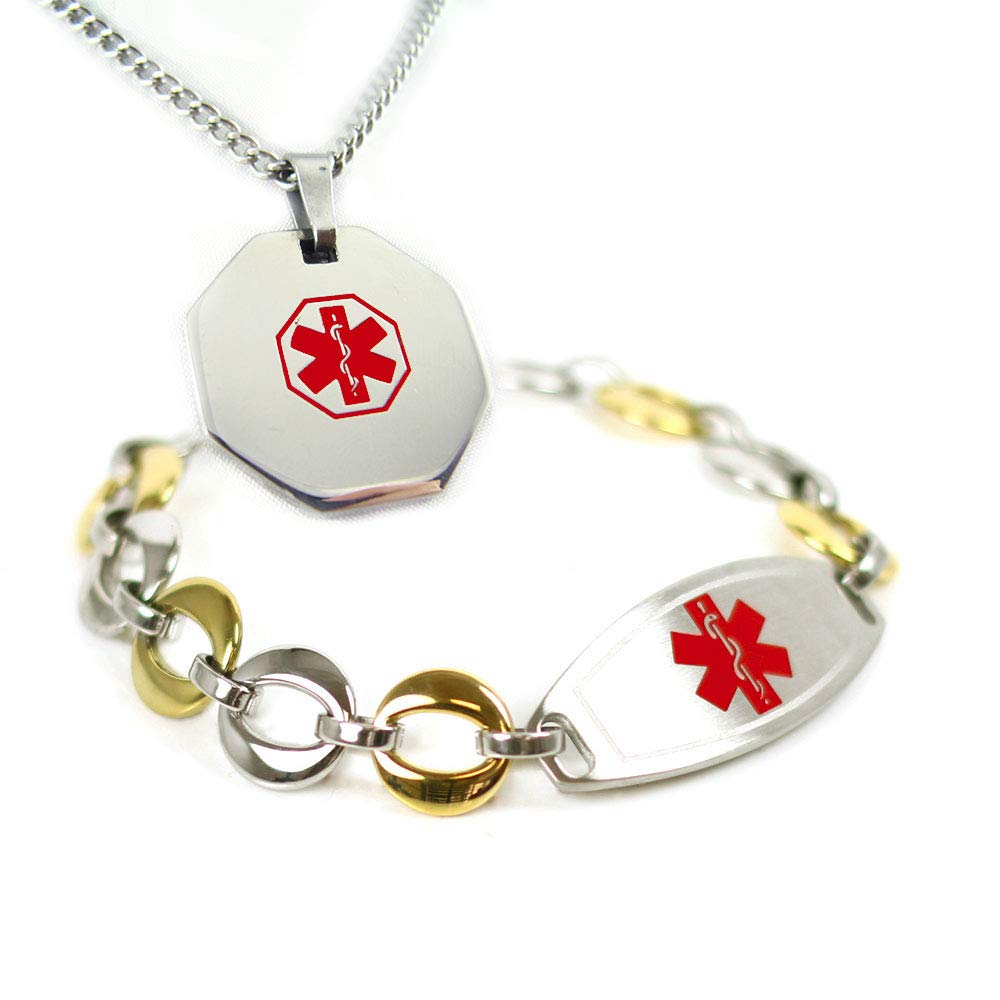 Custom Engraved Medical Alert Bracelet and Alert Necklace for Women - Stainless Steel 8.25 Inches Red: Wrist Size - 8.25in / 21cm Red