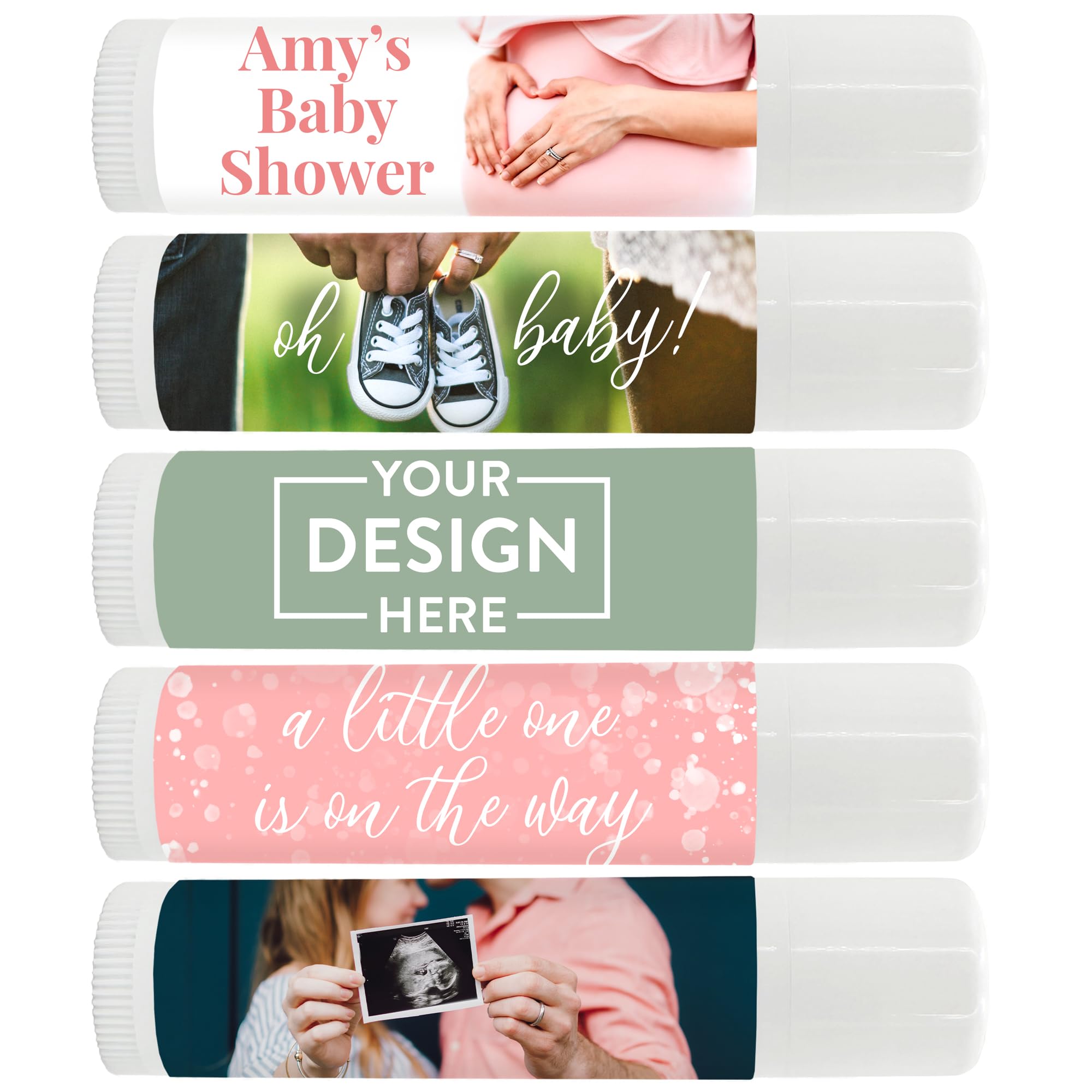 Celebrate the soon-to-be Mom with some balm! Our Personalized Baby Shower Lip Balm is a cute and creative way to thank your baby shower guests for all the love! Place them at each seat or add them to a small "thank you" goody bag! Each stick of lip balm features a white exterior and contains all natural ingredients. Your choice to easy assembly with self-adhesive labels or we can assemble them for you. Proudly made in the USA.