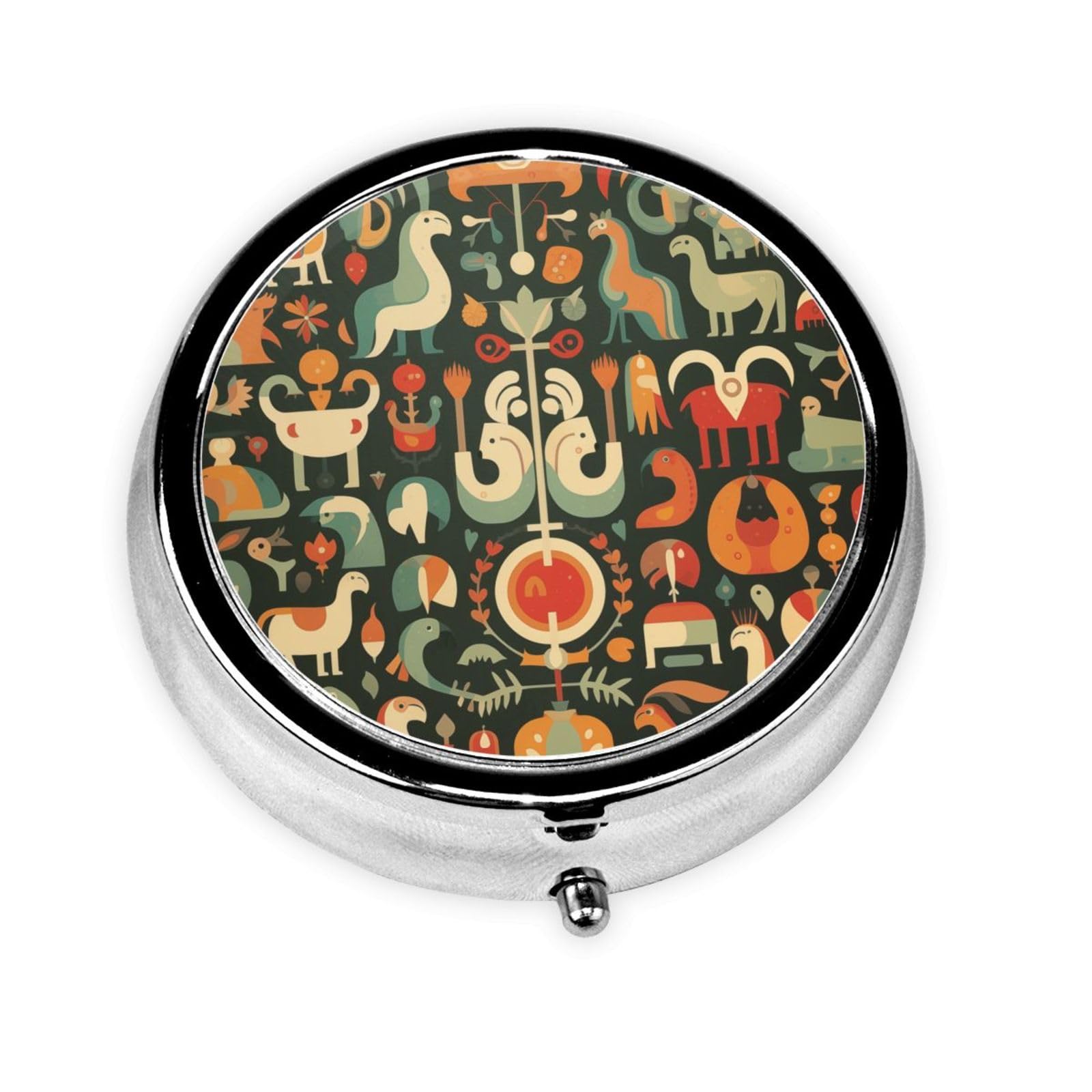Wide range of applicable scenarios: suitable for use in various occasions such as home, office, and travel, providing you with convenient drug storage solutions. Multi-grid plastic inserts: The medicine box is designed with 3 plastic inserts inside, which can separate and store different types of pills, making them more organized and convenient to use. Convenient opening button design: The medicine box button design is easy to open, convenient and fast, and simple to operate, allowing you to easily access the medicine. Environmentally friendly metal material: Made of environmentally friendly metal iron plating material, it is durable, safe and reliable, and protects medicines from damage. Cute Cartoon Animals Portable mini design: round mini pill box, measuring 2.0x2.0x0.7 inches, lightweight and portable, suitable for carrying in pockets and purses, providing you with urgently needed medicines anytime and anywhere.