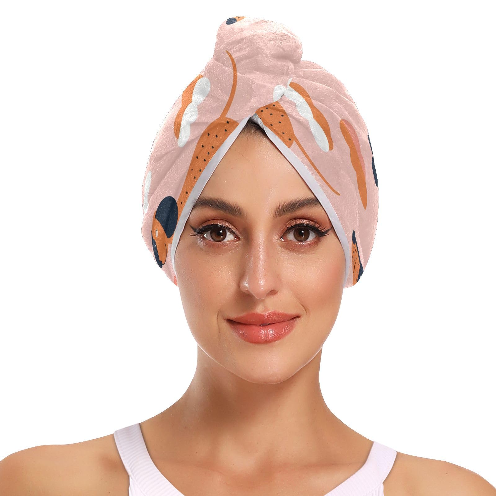 Cute Dogs Clouds Hair Towel 2 Pack Super Absorbent Hair Drying Towel Quick Dry Hair Turbans Head Towel with Button Twisty Wrap for Women Girls