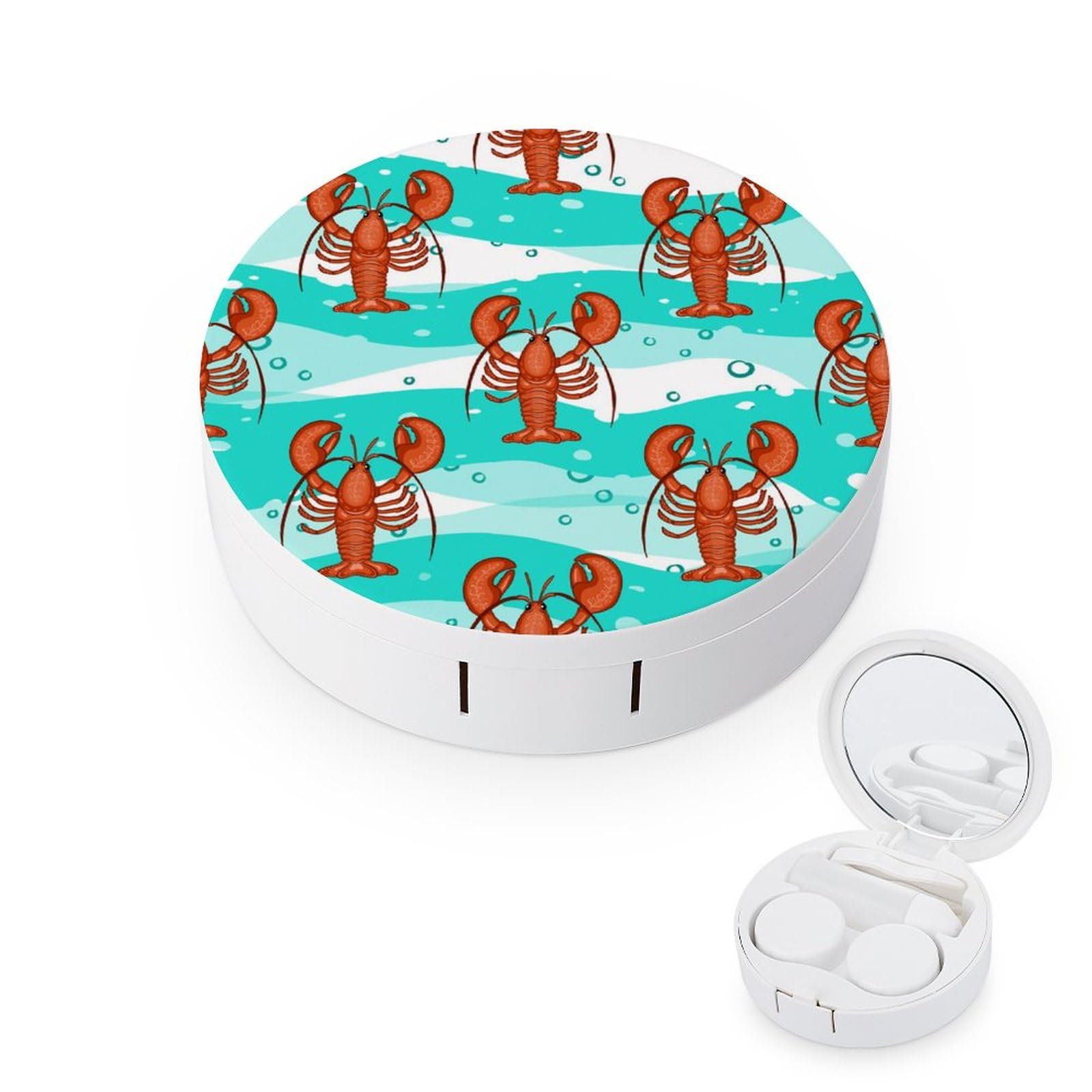 Cute Lobster Sea Waves Contact Lens Case Travel Portable Travel Contact Lens Box with Mirror