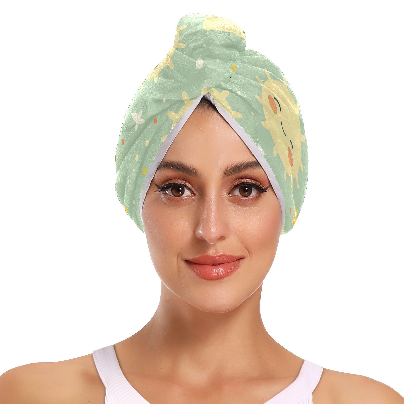 Cute Sun Moon Hair Towel 2 Pack Super Absorbent Hair Drying Towel Quick Dry Hair Turbans Head Towel with Button Twisty Wrap for Women Girls