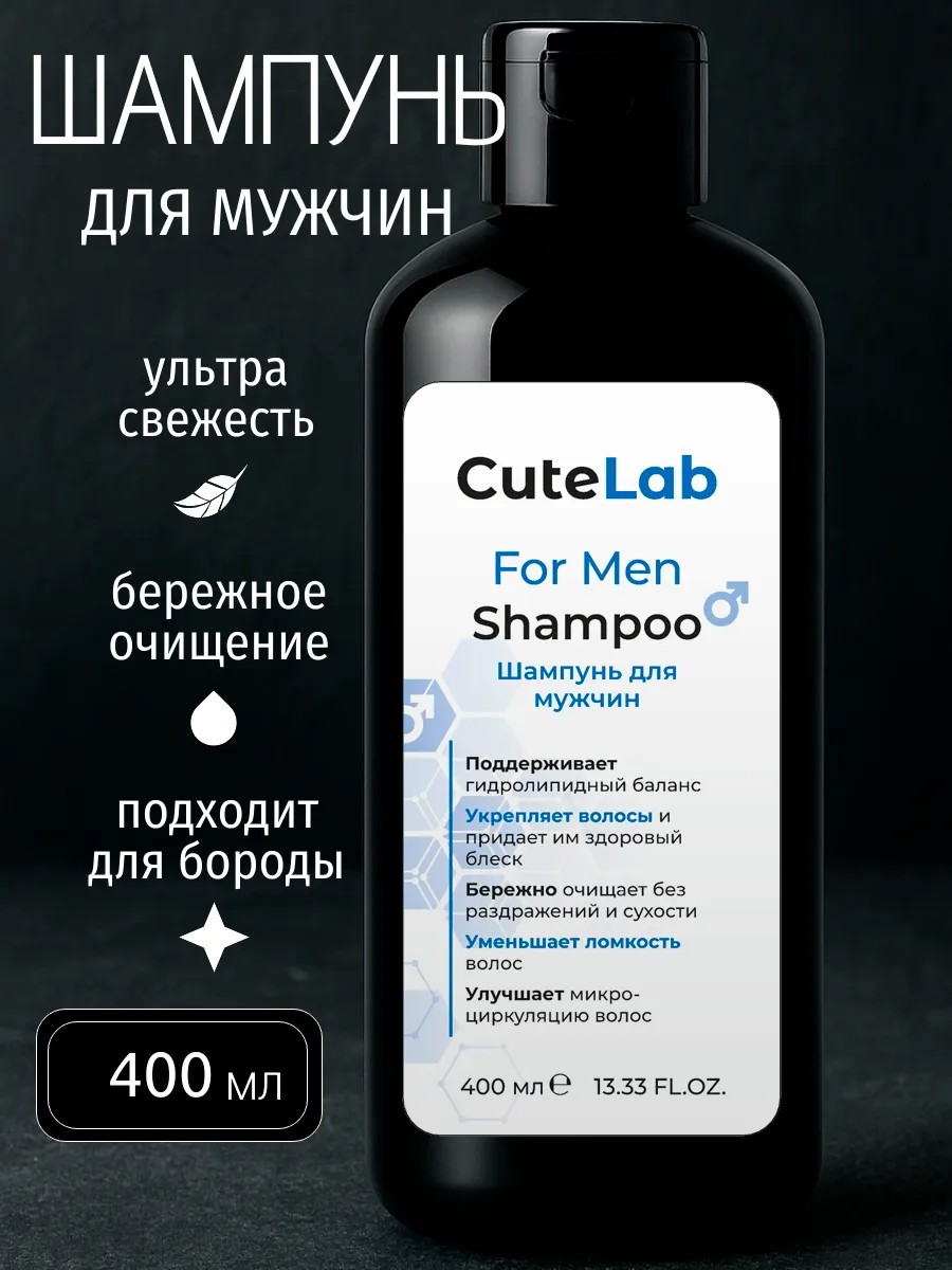 Cutelab Мужской шампунь для волос — современный уход для здоровья и силы волос. Профессиональная формула разработана специально для мужчин: она эффективно очищает кожу головы, удаляет излишки себума и предотвращает появление перхоти.