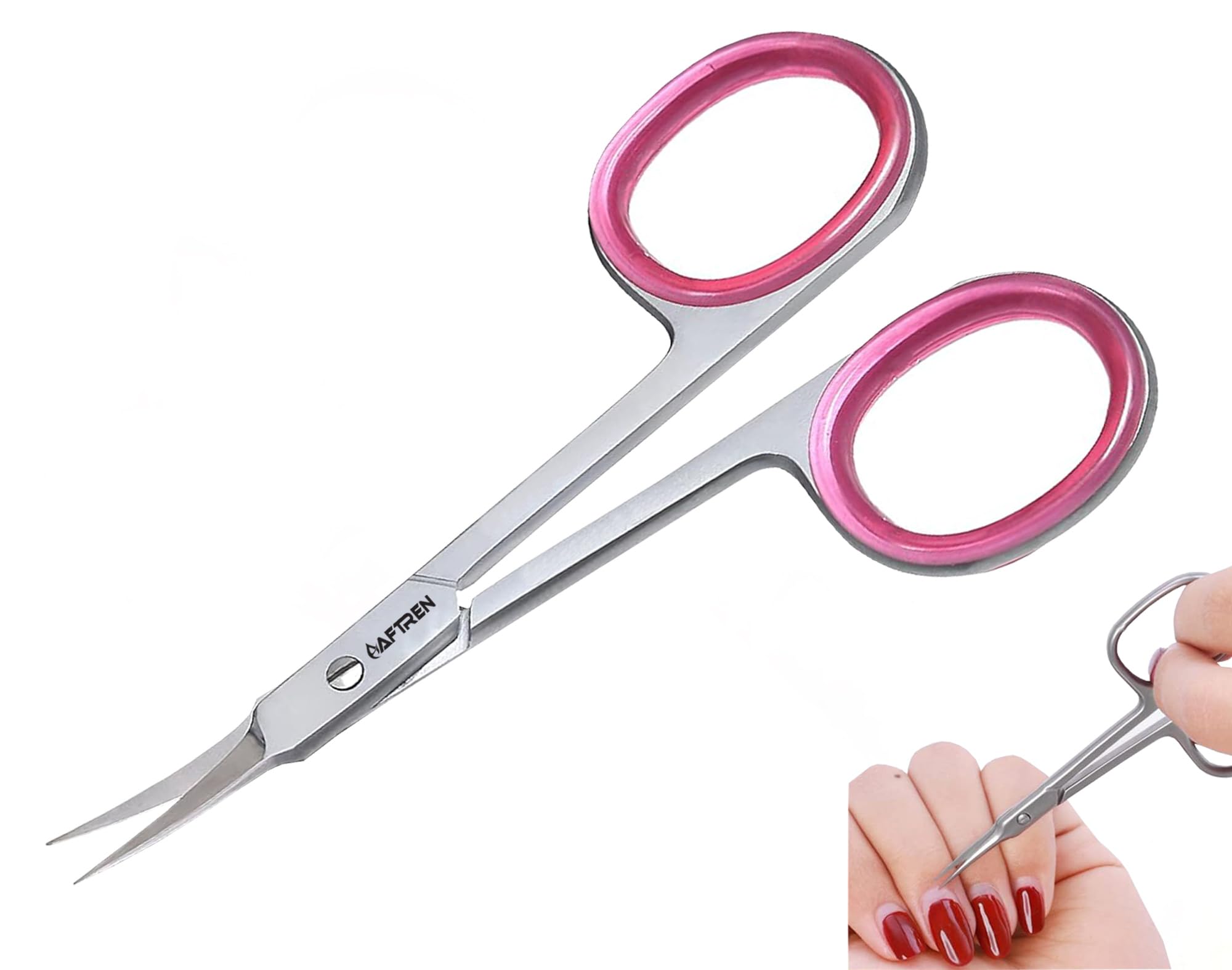 Gift: It can be Unique Gift on any occasion for your Love, Friend and Relatives. You can Direct Contact us for any Question or issue through Message Service. We are always here to Solve your problem. Our Quality Makes Us Brand: Our Mirror Polished Scissors Made Up of Stainless Steel and Titanium Plasma coated in Multi-Rainbow Color for extra protection. Titanium Color Enhance the life of Scissors and prevent it from Rust.nhance the life of Scissors and prevent it from Rust. Design: Small Scissors with Curved Blades, Standard Size Holes Round Screw Joint and Ergonomic Size of 4.5 inches gives a Complete Control over Self Use at different Levels for Trimming and Cutting. Comfortable handle keeps your fingers away from injury and paining unlike other brands. Multi-Functional Use: Aftren Cuticle Scissors are best to cut Cuticles, Toe Nails, Dead Skin and Trimming Eyebrow, Eyelashes or False Eyelashes, Nose, Ear, Beard, Mustache Hairs. Help you to say goodbye to sloppy images. Cuticle Scissors: Especially designed for professional and personal use for manicure & pedicure for Home and Parlor Use. Pretty Multi Rainbow Scissors come in a safety pouch. Easy to use, store and carry anywhere.