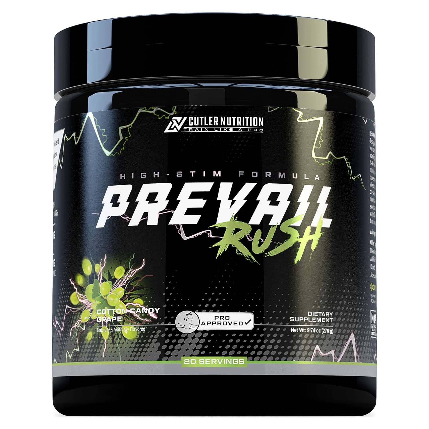 Cutler Nutrition High Stim Pre Workout Powder Prevail Rush Preworkout for Men & Women for Intense Pumps Energy and Focus with Caffeine NO3T Betaine and Dynamine | Cotton Candy Grape (20 Servings)