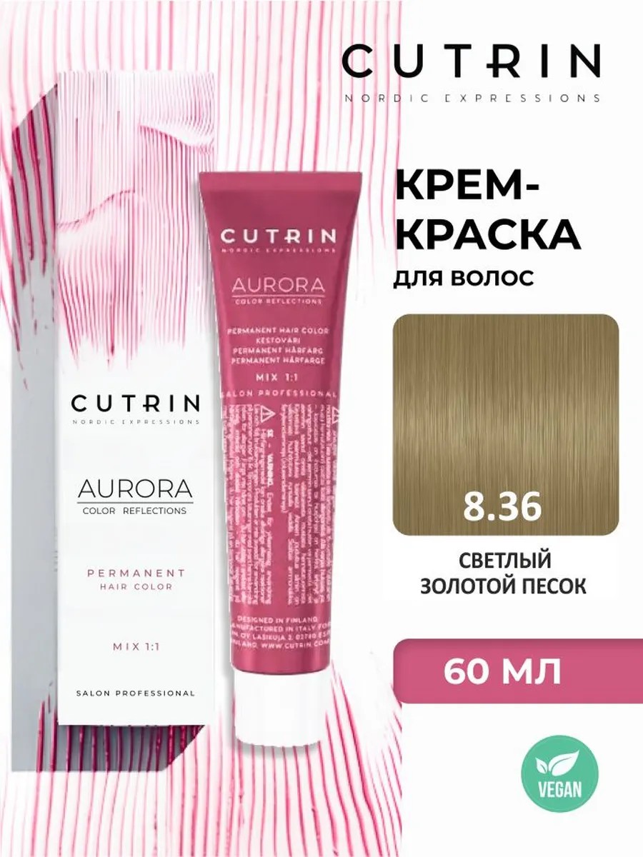 | Полное наименование товара | Cutrin AURORA краска для волос 8.36 Светлый золотой песок, 60 мл |