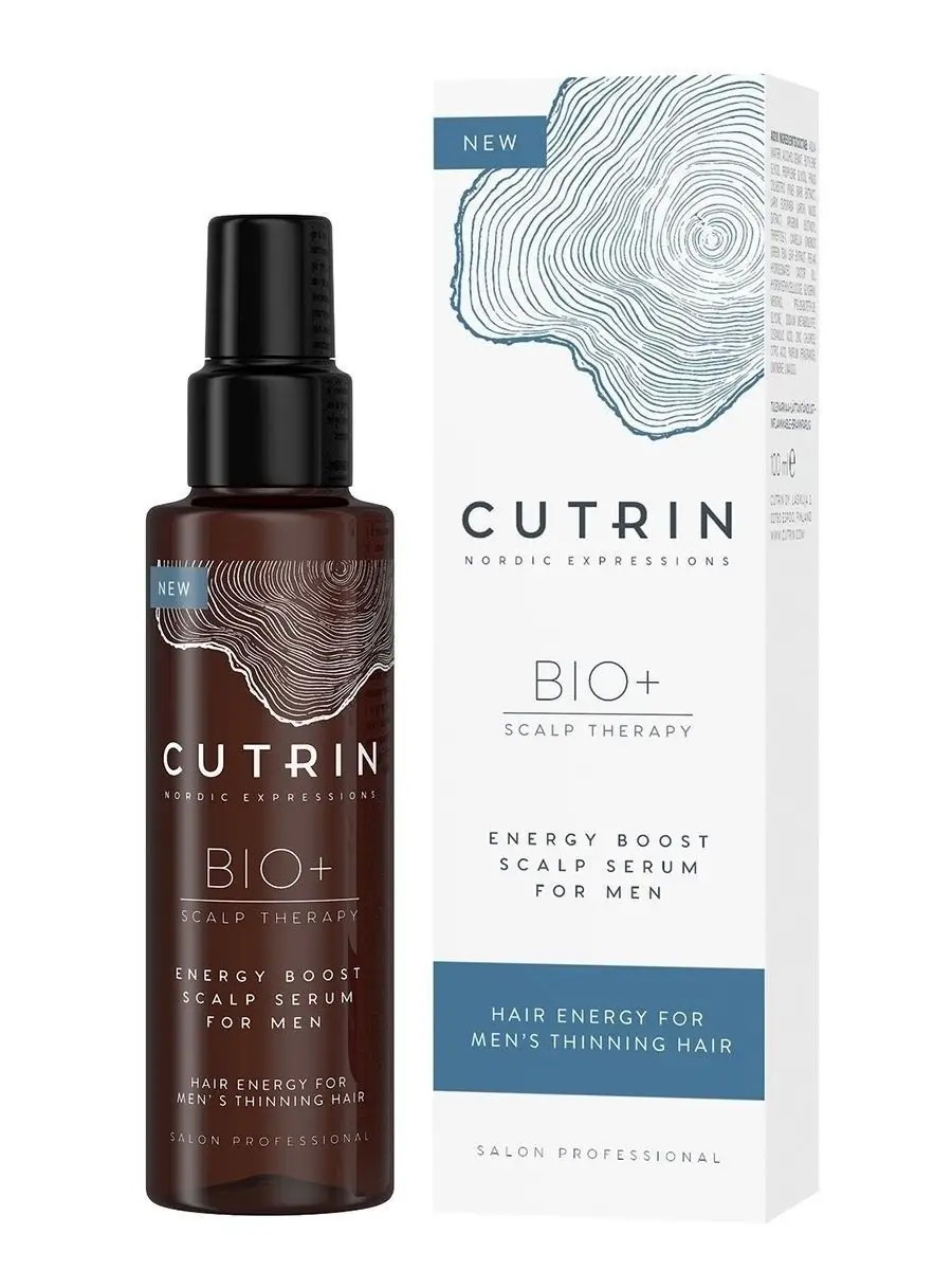 Cutrin BIO+ ENERGY BOOST Strengthening Serum for Hair, 100 ml. A cleansing and toning serum for men that prevents premature hair loss. Strengthens hair and improves its growth. This technology contains a patented antioxidant (natural northern pine bark extract) and ingredients that improve hair growth. Directions: Apply evenly to the scalp. Gently massage until completely absorbed. Do not rinse.