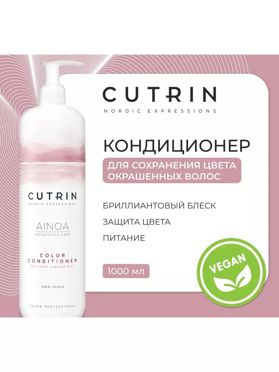 Кондиционер Cutrin Ainoa Color питает и облегчает расчесывание. Инновационный комплекс защиты цвета сохраняет его яркость. Придает роскошный блеск и усиливает сияние цвета. Богатое антиоксидантами натуральное масло семян северной клюквы помогает защитить волосы от внешних факторов стресса. Содержит фильтры от UVA/UVB лучей.Объем 1000 мл