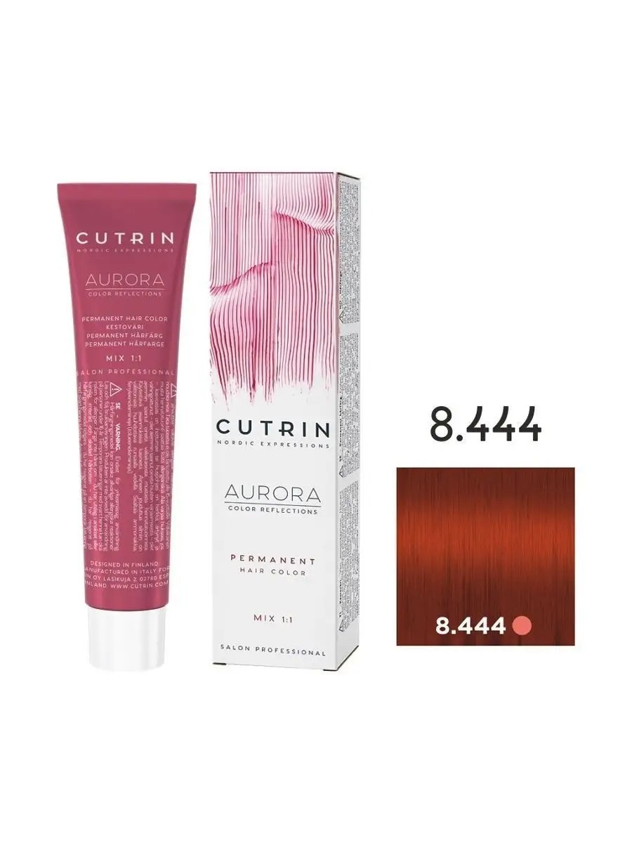 AURORA PERMANENT Hair Color Cream 8.444 Rowan, 60 ml. CUTRIN AURORA permanent hair color contains nourishing natural active ingredients, such as cranberry seed oil, which help restore hair and protect it from damage. After coloring, hair remains in good condition and is easy to comb. Recommended mixing ratio: 1:1.