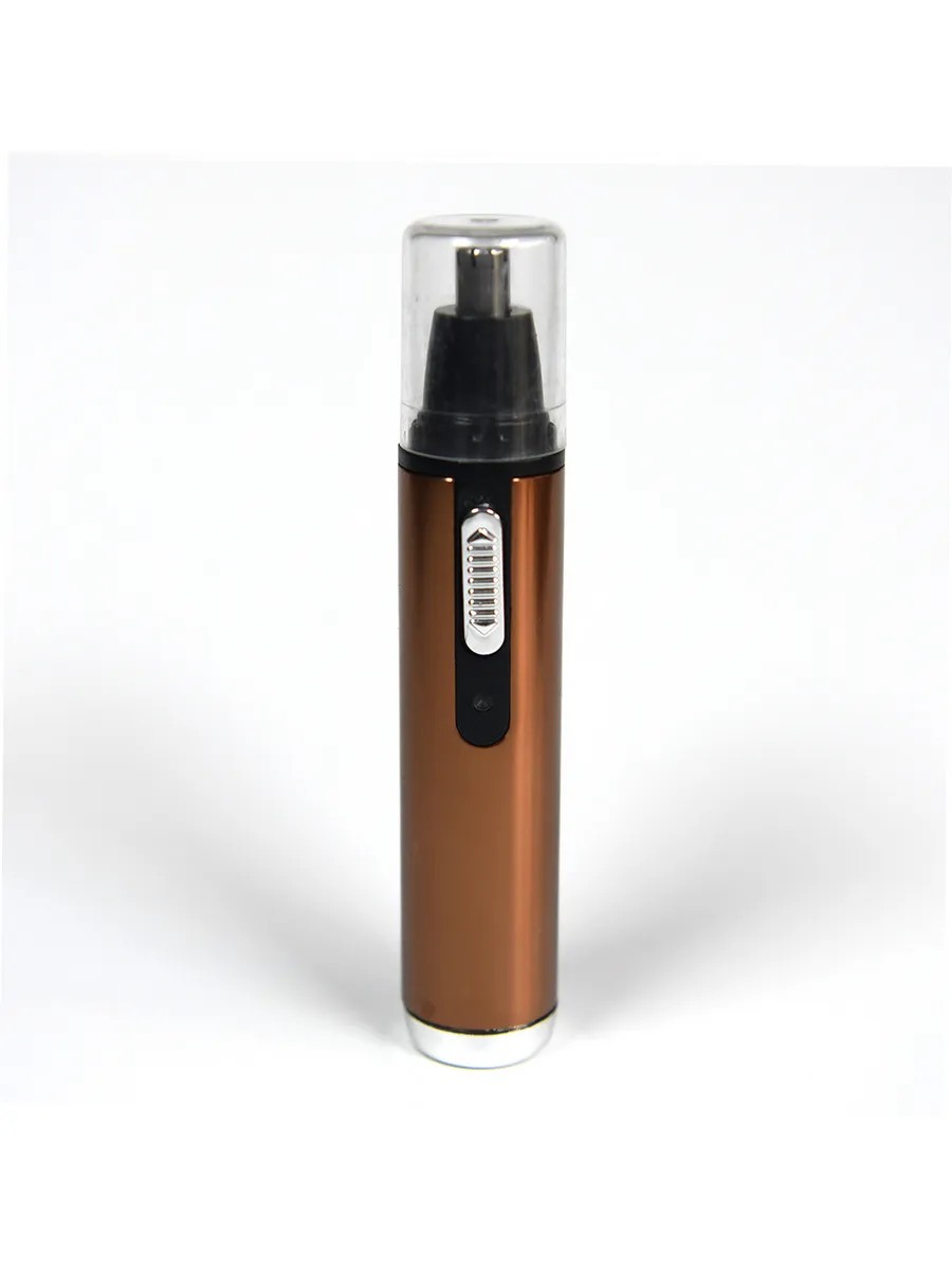 Champagne gold English packaging. This electric nose hair trimmer is designed for a refined life. The aluminum alloy body has a distinctive texture, is lightweight and portable, weighing only 97 grams. The rechargeable design is convenient and practical, easily trimming nose and ear hair. Multifunctional design meets daily grooming needs. Automatic operation, safe and effective.