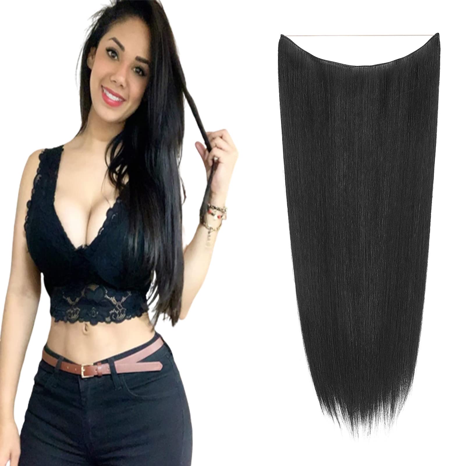 Cybelleza 20inch Long Straight Hair Extension Invisible Secret Wire Crown Hair Extensions Clip in One Piece Natural Synthetic Hairpiece for Women (Black) 20" - Straight Black