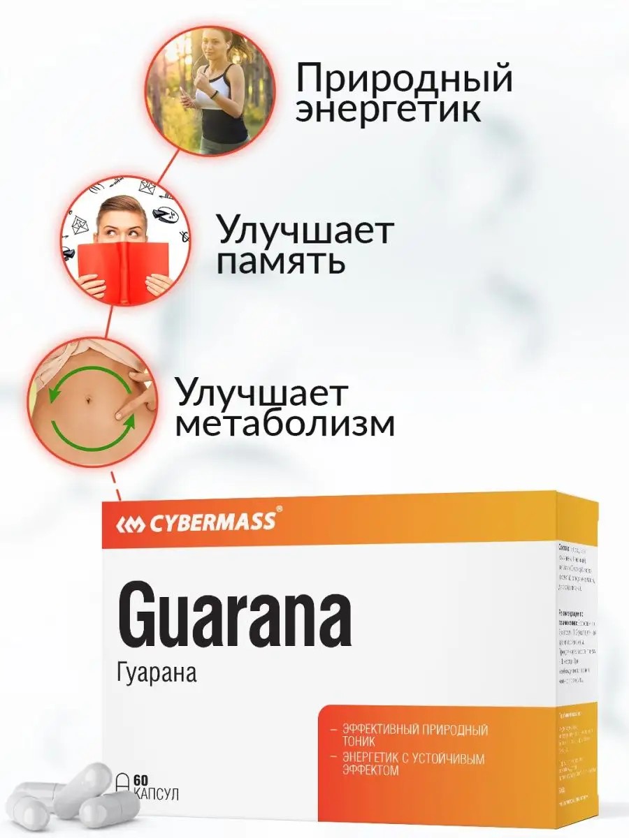 Гуарана от Cybermass — это удобный предтренировочный комплекс в капсулах, который сочетает в себе свойства натурального энергетика, ноотропа и жиросжигающего комплекса. Он дополняет линию спортивного питания и может стать частью рациона для тех, кто ищет спортивный энергетик, бады для энергии или предтрен в капсулах, поддерживающий как тело, так и мозг.