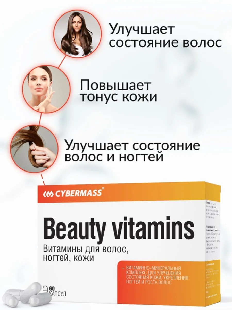 Cybermass Витамины для волос, кожи, ногтей, витамины для женщин, 60к