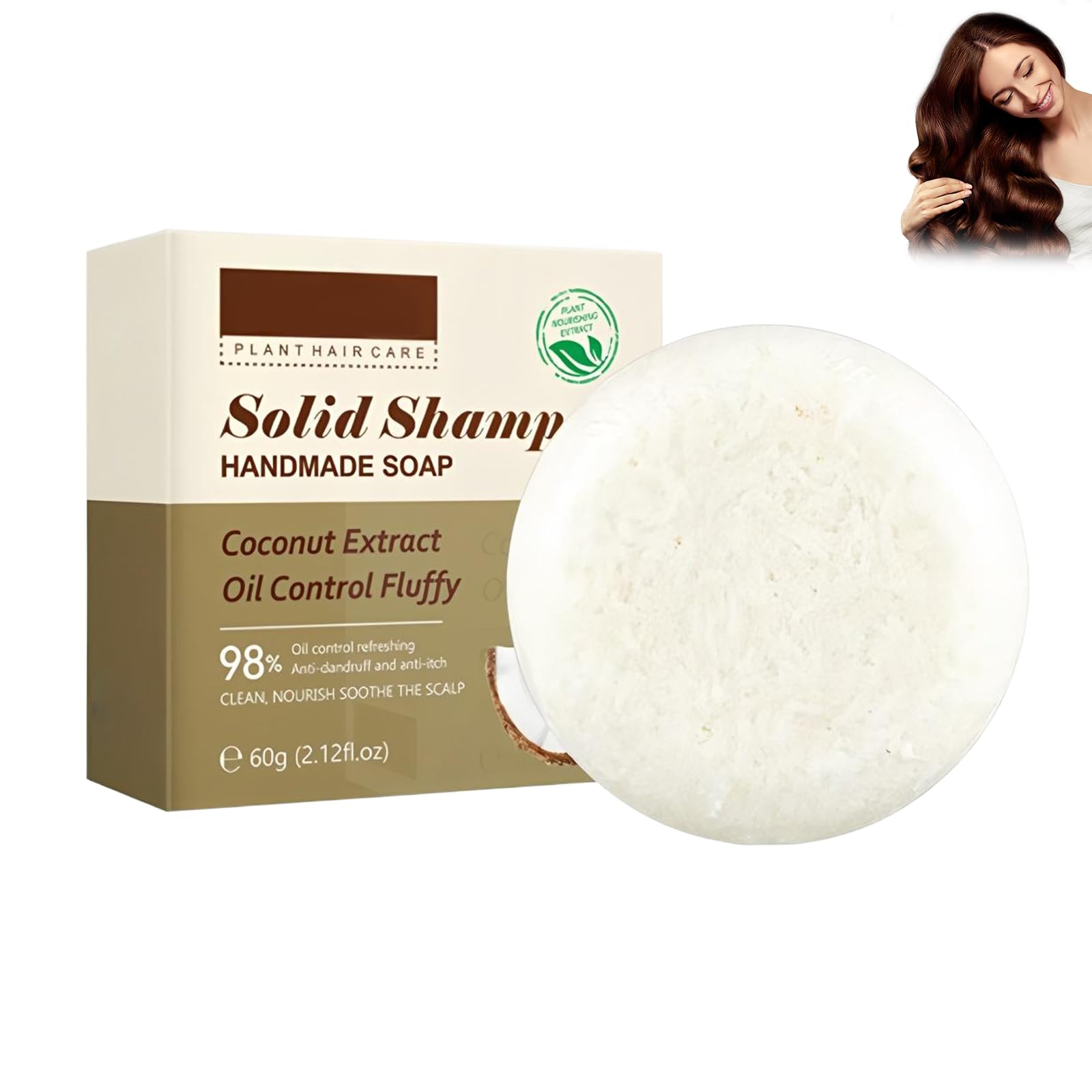 Shampoing à la noix de coco - 60 g - Shampooing solide régénérant et nourrissant - Soin des cheveux hydratant à la noix de coco - Nettoyage en profondeur du cuir chevelu - Réparation nourrissante pour