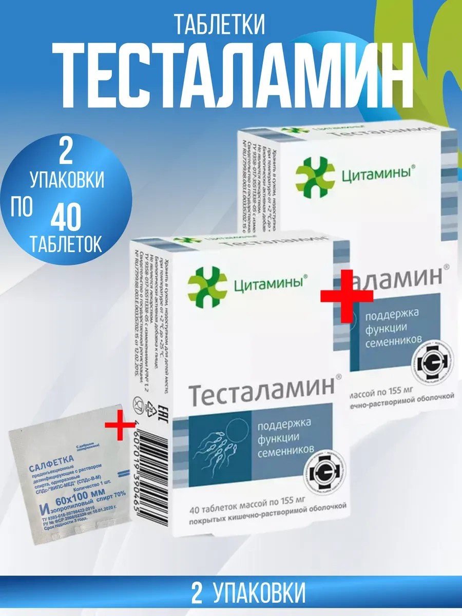 цитамины Тесталамин БАД, 2 упаковки по 40 шт, + салфетка