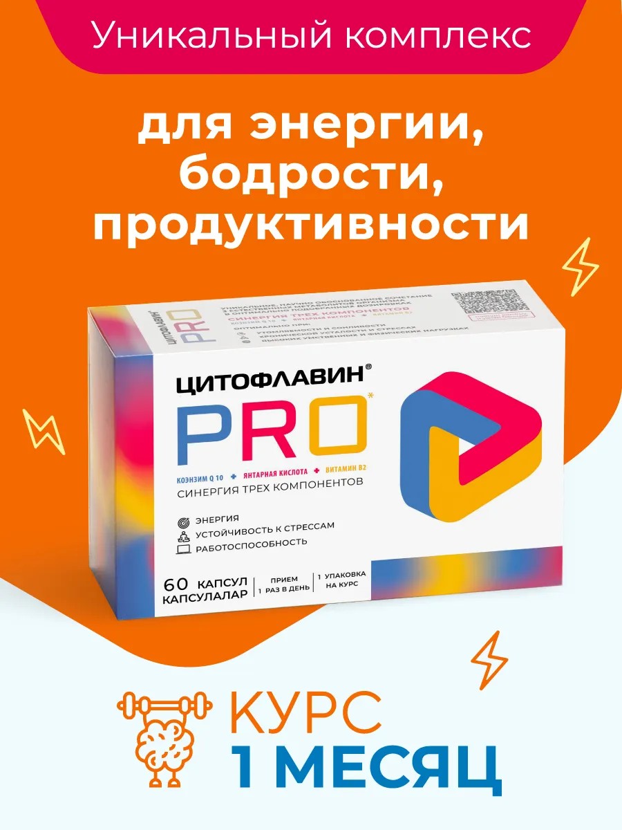 Цитофлавин PRO БАД для мозга и энергии с янтарной кислотой и коэнзимом Q10