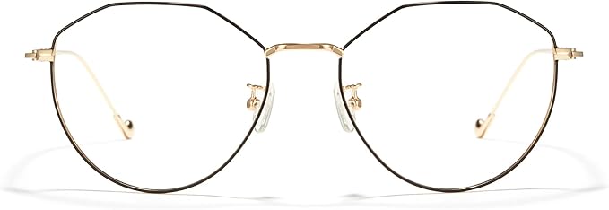 Cyxus Round Blue Light Glasses for Men Women Wire Frame - 22 - Oval Black Gold Frame - Clear Lens