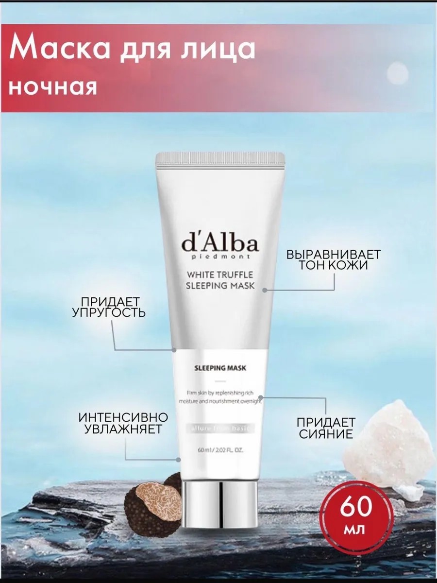 d'Alba White Truffle Sleeping Mask – это ночная маска, которая обеспечивает комплексный уход за кожей во время сна, направленный на восстановление, увлажнение и выравнивание тона кожи. Маска придает коже отдохнувший и свежий вид утром, благодаря уникальному составу.