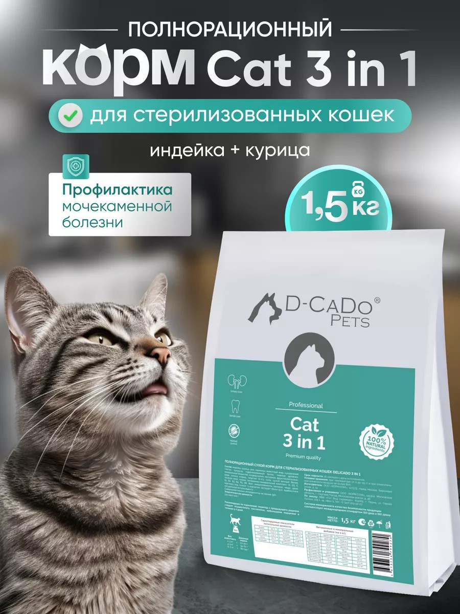 D-CaDo Pets Корм для стерилизованных кошек сухой 1.5 кг
