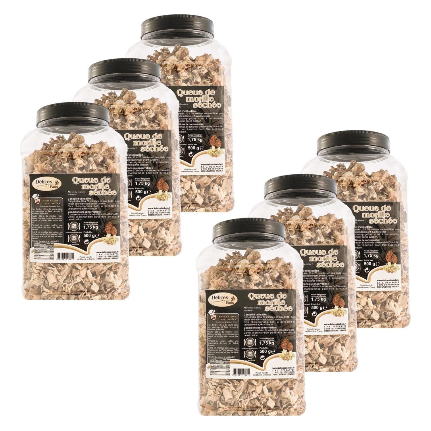 This set contains 6 products described below: Morel stem tubes (1 to 4 cm), perfect for flavoring your charcuterie, gratins, etc. It's important to know that drying is the oldest method of preservation and the one that best preserves all the organoleptic qualities of mushrooms (appearance, color, aroma, etc.). After simple rehydration, they will release all their aromas and enhance all your dishes! This preservation method allows you to enjoy all varieties of mushrooms throughout the year, even out of season—you'd be wrong to miss out! The origins of this selection of mushrooms may vary depending on the season and the year. Packaged in France. Ingredients: 100 morel stems (Morchella esculenta, conica) Allergens: None Storage: Store at room temperature, away from heat and humidity, before opening. Preparation: Soak the dried mushrooms in lukewarm water for at least 15 minutes. Drain, then plunge the mushrooms into boiling water for 1 minute. Your mushrooms are now ready to cook. You can also use half water and half milk for even more tender morels. Product Information: Net Weight: 500g Origin: Mongolia Energy: 1193.7kJ 284.4kcal Fat: 2.77g of which saturates 0.66g Carbohydrate: 22.66g of which sugars 17.24g Protein: 28.6g Dietary Fiber: Not Applicable Salt: 0.14g Packaging: Plastic Jar Full details are available on the product packaging. The information on this page is for guidance only. We encourage you to read the information on the product label, particularly regarding the INGREDIENTS 100 Morel Stems (Morchella esculenta, conica) SAFETY WARNING Full details are available on the product packaging. The information on this page is for guidance only. We encourage you to read the information on the product label, especially regarding food allergies. See moreLot 6x Queue de morille - Pot 500g 1 Unité (Lot de 6)DESCRIPTION DU PRODUIT DESCRIPTION DU PRODUIT Ce lot contient 6 produits décrits ci-dessous : Tubo de pieds de morilles (1 à 4cm), parfait pour parfumer vos charcuteries, gratins. Il est important de savoir que le séchage est la méthode la plus ancienne de conservation, et celle qui permet de préserver au mieux toutes les qualités organoleptiques des champignons (apparence, couleur, arôme …). Après simple réhydratation, ils restitueront l'intégralité de leurs arômes et sublimeront toutes vos préparations ! Ce mode de conservation permet de profiter de toutes les variétés de champignon tout au long de l'année, même hors saison, on aurait tort de s'en priver ! Les origines de cette sélection de champignons peuvent varier en fonction des saisons et des années. Conditionné en France. Ingrédients : 100 queue de morille (Morchella esculenta, conica) Allergènes : Aucun Mode de conservation : A conserver à température ambiante, à l'abri de la chaleur et de l'humidité avant ouverture. Conseil d'utilisation : Laisser tremper les champignons secs dans l'eau tiède pendant au moins 15 minutes. Egoutter puis plonger les champignons dans l'eau bouillante pendant 1 minute. Vos champignons sont désormais prêts à être cuisinés. Vous pouvez également utiliser moitié eau et lait pour des morilles encore plus moelleuses. Informations produit : Poids net : 500g Origine : Mongolie Energie : 1193,7KJ 284,4Kcal Lipides : 2,77g dont acides gras saturés 0,66g Glucides : 22,66g dont sucres 17,24g Protéines : 28,6g Fibres alimentaires : NCg Sel : 0,14g Emballage : Pot en Plastique Détail complet et disponible sur l'emballage du produit. Les informations présentes sur cette page sont à titre indicatif. Nous vous invitons à prendre connaissance des informations sur l'étiquette du produit, en particulier concernant les INGRÉDIENTS 100 queue de morille (Morchella esculenta, conica) AVERTISSEMENT DE SÉCURITÉ Détail complet et disponible sur l'emballage du produit. Les informations présentes sur cette page sont à titre indicatif. Nous vous invitons à prendre connaissance des informations sur l'étiquette du produit, en particulier concernant les allergies alimentaires. Voir plus