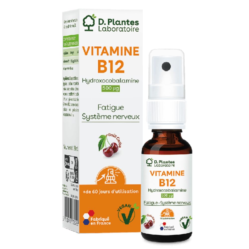 : A fun and convenient Vitamin B12 thanks to its spray format and delicious cherry flavor. Supplementing becomes a pleasure! D.Plantes offers you Vitamin B12 in its most complete form, highly absorbable by the body: hydroxocobalamin. This natural form is recommended by the WHO and covers all of the body's Vitamin B12 requirements. Vitamin B12 supplementation is particularly recommended for vegans, vegetarians, or flexitarians (as it is not found in plant-based foods), as well as for people over 60. Vitamin B12 is essential for the proper functioning of the body: it contributes, among other things, to the normal functioning of the nervous and immune systems. Vitamin B12 plays a role in the process of cell division, contributes to the normal formation of red blood cells, normal energy metabolism, normal homocysteine metabolism, normal immune system function, normal nervous system function, normal psychological function, and helps reduce fatigue. Ingredients: Water stabilizer: glycerol natural cherry flavor with other natural flavors acidifier: citric acid hydroxocobalamin (vitamin B12) preservatives: potassium sorbate, sodium benzoate. P.when('A').execute(function(A) { A.on('a:expander:toggle_description:toggle:collapse', function(data) { window.scroll(0, data.expander. expander[0].offsetTop-100) }) }) Directions: Take 2 sprays per day. Safety Warning: PRECAUTIONS FOR USE: This product is not a medicine and cannot replace a varied, balanced diet and a healthy lifestyle. Pregnant or breastfeeding women should consult their doctor. Do not exceed the recommended daily dose. Excessive consumption may have a laxative effect. Keep tightly closed, away from heat and light, in a clean, dry place. Keep out of reach of young children. See moreIdeal for vegans and vegetarians. Delicious cherry flavor thanks to a natural aroma. 2 sprays 500 µg of vitamin B12: the optimal recommended dosage. Hydroxocobalamin form: the natural form of vitamin B12 recommended by the WHO. It covers all of the body's vitamin B12 requirements. Highly absorbable form: it is absorbed better and stored longer. Vitamin B12 food supplement.Description du produit Une Vitamine B12 ludique et pratique grâce à son format spray et à son bon goût cerise. Se supplémenter devient un plaisir ! D.Plantes vous propose la vitamine B12 sous sa forme la plus complète, hautement absorbable par l'organisme : l'hydroxocobalamine. Cette forme naturelle est conseillée par l'OMS, et couvre l'ensemble des besoins du corps en vitamine B12. Une supplémentation en vitamine B12 est recommandée notamment pour les personnes végans, végétariennes ou flexitariennes (elle n'est pas présente dans les végétaux), mais aussi pour les personnes de plus de 60 ans. La vitamine B12 est essentielle au bon fonctionnement de l'organisme : elle participe entre autres au fonctionnement normal du système nerveux et du système immunitaire. La vitamine B12 joue un rôle dans le processus de division cellulaire, contribue à la formation normale de globules rouges, à un métabolisme énergétique normal, au métabolisme normal de l'homocystéine, au fonctionnement normal du système immunitaire, au fonctionnement normal du système nerveux, à des fonctions psychologiques normales, à réduire la fatigue. Ingrédients Eau stabilisant : glycérol arôme naturel de cerise avec autres arômes naturels acidifiant : acide citrique hydroxocobalamine (vitamine B12) conservateurs: sorbate de potassium, benzoate de sodium. P.when('A').execute(function(A) { A.on('a:expander:toggle_description:toggle:collapse', function(data) { window.scroll(0, data.expander. expander[0].offsetTop-100) }) }) Mode d'emploi Prendre 2 pulvérisations par jour. Avertissement De Sûreté PRÉCAUTIONS D'EMPLOI : Ce produit n'est pas un médicament et ne peut se substituer à un régime alimentaire varié, équilibré et à un mode de vie sain. Femmes enceintes ou allaitantes, demandez conseil à votre médecin. Ne pas dépasser la dose journalière recommandée. Une consommation excessive peut avoir des effets laxatifs. Maintenir soigneusement fermé, à l'abri de la chaleur et de la lumière dans un endroit propre et sec. Tenir hors de portée des jeunes enfants. Voir plusIdéal pour les vegans et végétariens. Bon goût cerise grâce à un arôme naturel. 2 pulvérisations 500 µg de vitamine B12 : dosage optimal recommandé. Forme hydroxocobalamine : forme naturelle de vitamine B12 conseillée par l'OMS. Elle couvre l'ensemble des besoins du corps en vitamine B12. Forme hautement absorbable : elle s'absorbe mieux et se stocke plus longtemps. Complément alimentaire à base de Vitamine B12.D. Plantes Vitamine B12 Spray 20ml