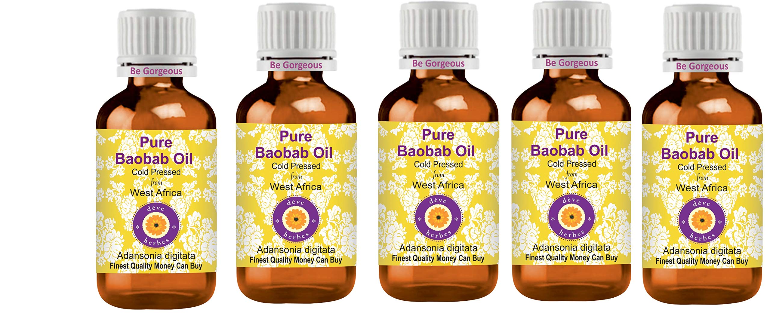 d ve herbes Pure Baobab Oil (Adansonia digitata) Cold Pressed (Pack of Five) 100ml X 5 (16.9 oz) 3.38 Fl Oz (Pack of 5)