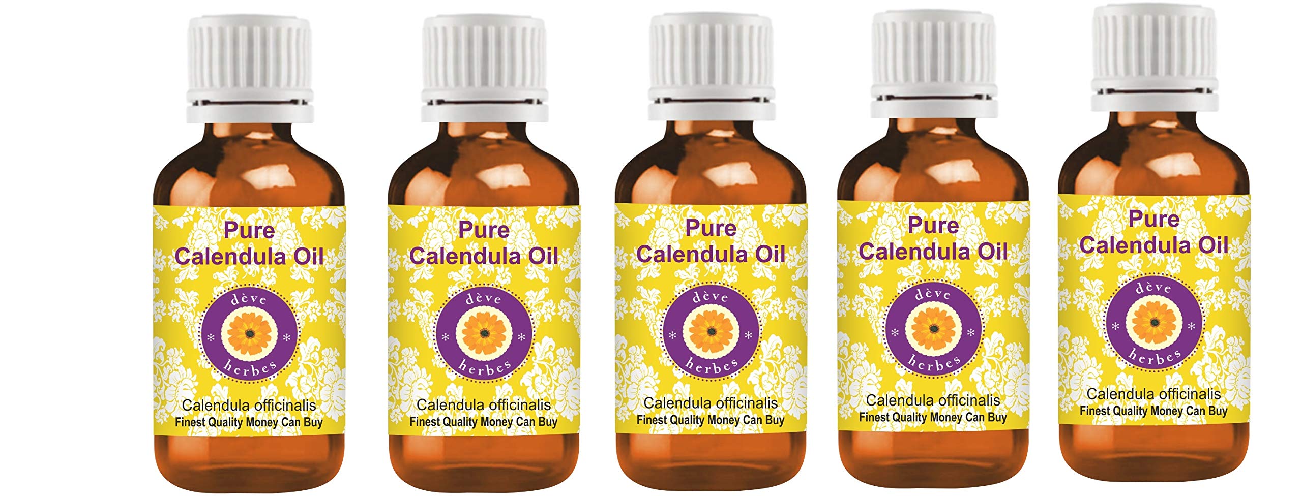HOW TO USE: Carrier Oils can be applied directly to skin. It is derived from plant sources. Use it alone or with other oils to nourish your skin. It can also be used to dilute essential oils to carry them into the skin. CAUTION: This product does not have a child safety cap. Keep away from children. AROMA: Carrier Oils are NOT aromatic oils. Most natural carrier oils have FAINT OR NO AROMA. We do not add synthetic aroma to make our oils attractive, unlike many other brands. Pure Calendula Oil is used for therapeutic purposes has very faint or no aroma. Tens of thousands of our customers have experienced its therapeutic benefits. Quantity - 100ml X 5 (16.9 oz) Container Type - High Quality Amber Glass Bottle. Botanical Name -Calendula officinalis, Pure, Natural, Undiluted, Therapeutic Grade Carrier Oil, Alcohol Free, Solvent Free, Vegan, Cruelty Free. FINEST QUALITY MONEY CAN BUY. 100 SATISFACTION PURITY GUARANTEE - We, the manufacturer, Deve Herbes, guarantee that our oils are pure natural. We offer 100 satisfaction guarantee on our products. If you are unsatisfied for any reason we will replace your product or refund your money. We believe our oils will impart lasting therapeutic benefits to you. We believe in our products have been offering 'No Questions Asked Money Back Guarantee' for the last 11 Years.