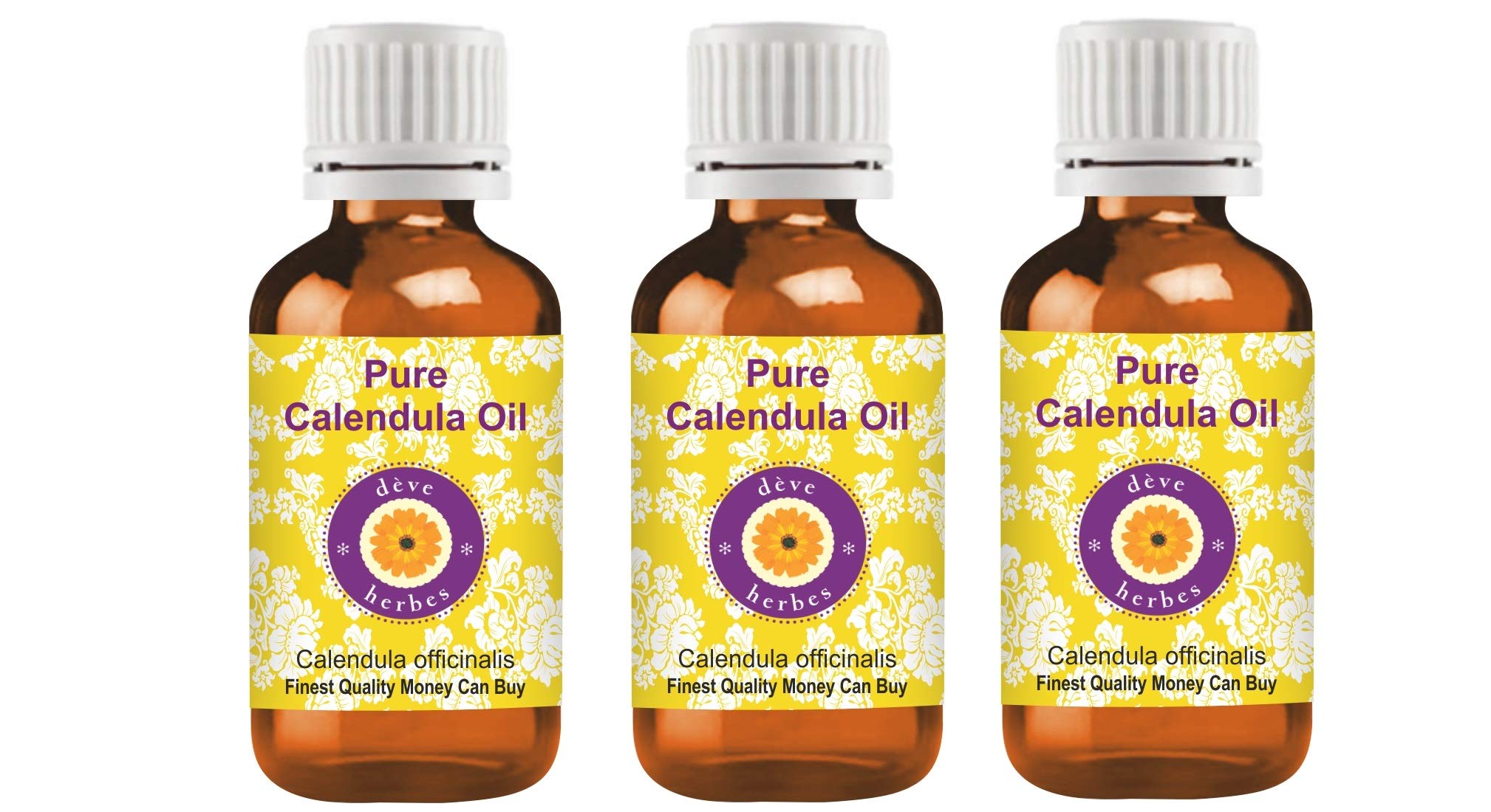 HOW TO USE: Carrier Oils can be applied directly to skin. It is derived from plant sources. Use it alone or with other oils to nourish your skin. It can also be used to dilute essential oils to carry them into the skin. CAUTION: This product does not have a child safety cap. Keep away from children. AROMA: Carrier Oils are NOT aromatic oils. Most natural carrier oils have FAINT OR NO AROMA. We do not add synthetic aroma to make our oils attractive, unlike many other brands. Pure Calendula Oil is used for therapeutic purposes has very faint or no aroma. Tens of thousands of our customers have experienced its therapeutic benefits. Quantity - 100ml X 3 (10 oz) Container Type - High Quality Amber Glass Bottle. Botanical Name -Calendula officinalis, Pure, Natural, Undiluted, Therapeutic Grade Carrier Oil, Alcohol Free, Solvent Free, Vegan, Cruelty Free. FINEST QUALITY MONEY CAN BUY. 100 SATISFACTION PURITY GUARANTEE - We, the manufacturer, Deve Herbes, guarantee that our oils are pure natural. We offer 100 satisfaction guarantee on our products. If you are unsatisfied for any reason we will replace your product or refund your money. We believe our oils will impart lasting therapeutic benefits to you. We believe in our products have been offering 'No Questions Asked Money Back Guarantee' for the last 11 Years.