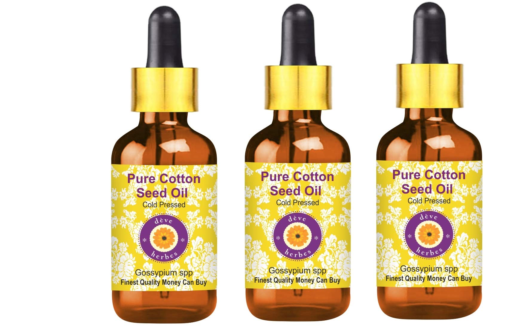 d ve herbes Pure Cotton Seed Oil (Gossypium spp) with Glass Dropper Cold Pressed (Pack of Three) 100ml X 3 (10 oz)