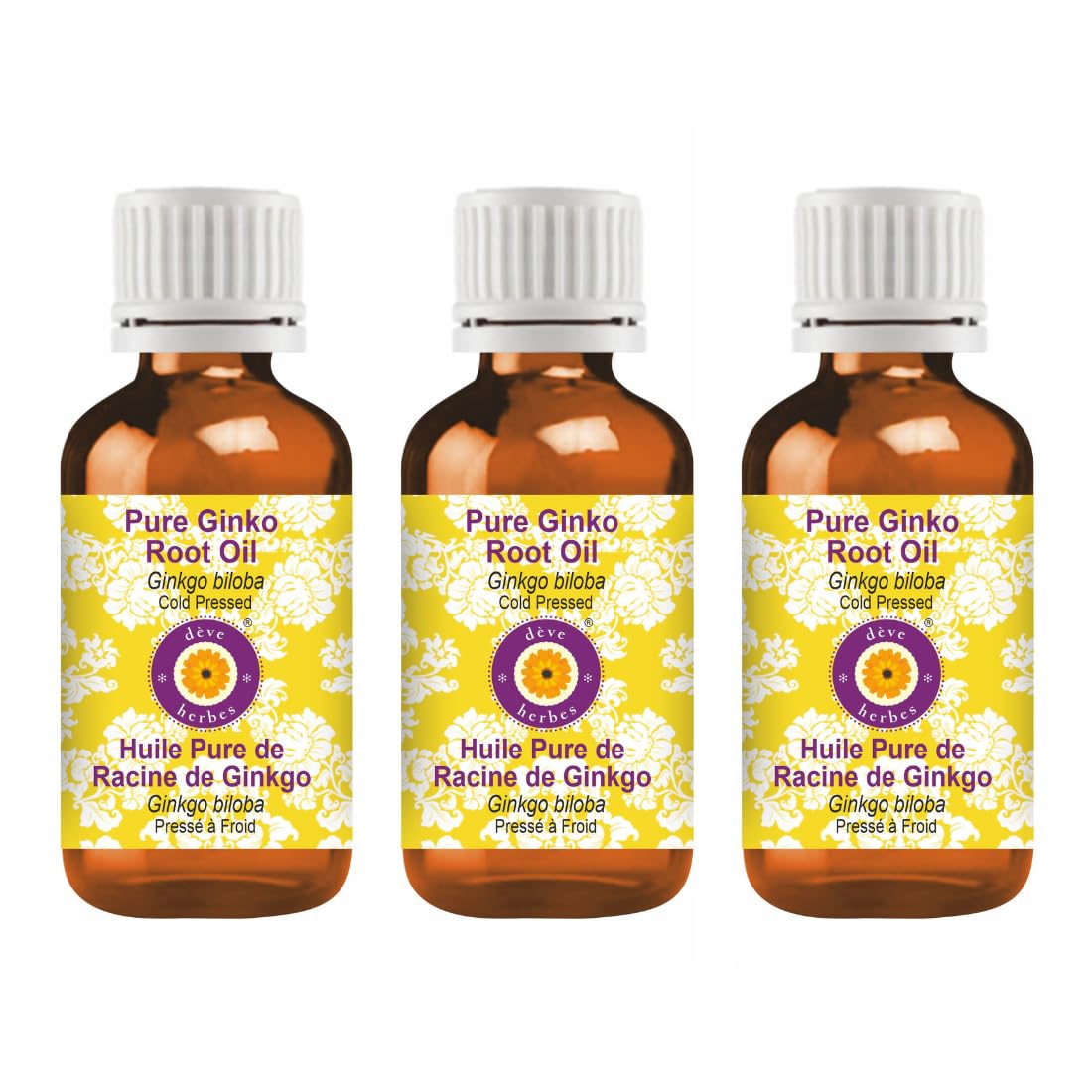 d ve herbes Pure Ginko Root Oil (Ginkgo biloba) Cold Pressed (Pack of Three) 100ml X 3 (10 oz)