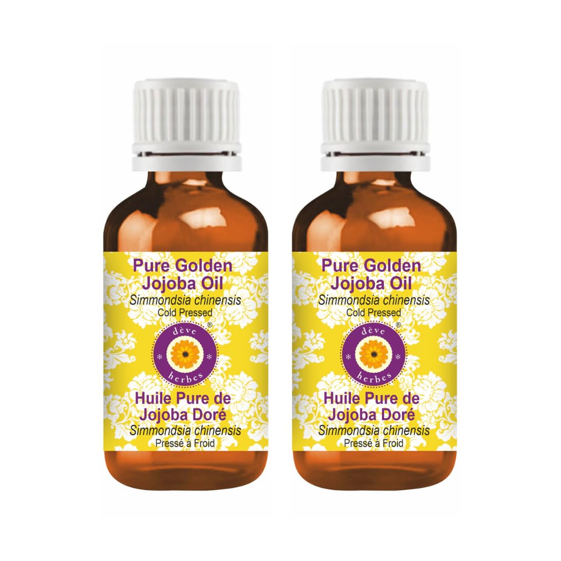 d ve herbes Pure Golden Jojoba Oil (Simmondsia chinensis) Cold Pressed (Pack of Two) 100ml X 2 (6.76 oz)