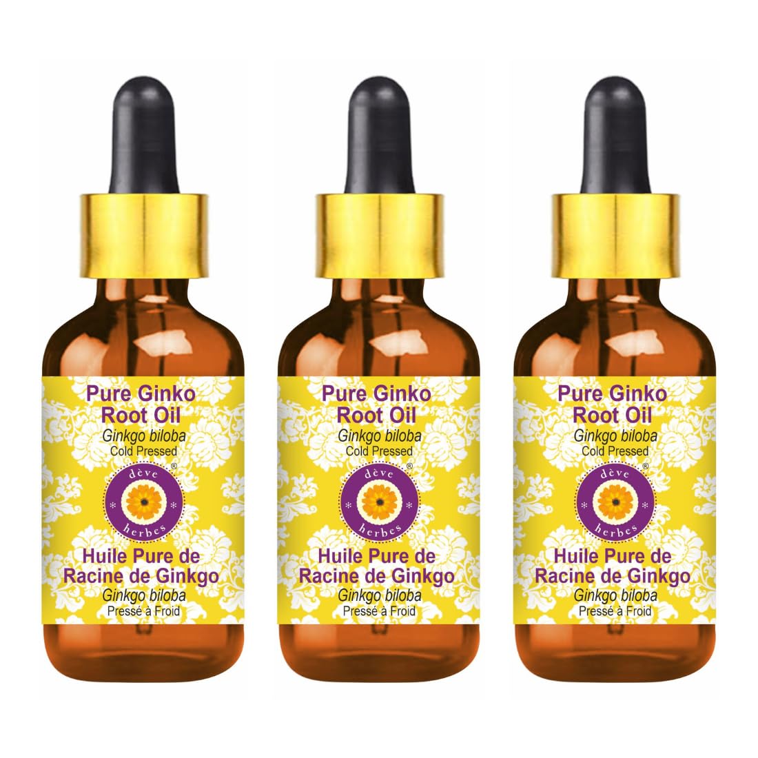 d ve herbes Pure Golden Jojoba Oil (Simmondsia chinensis) with Glass Dropper Cold Pressed (Pack of Three) 100ml X 3 (10 oz)