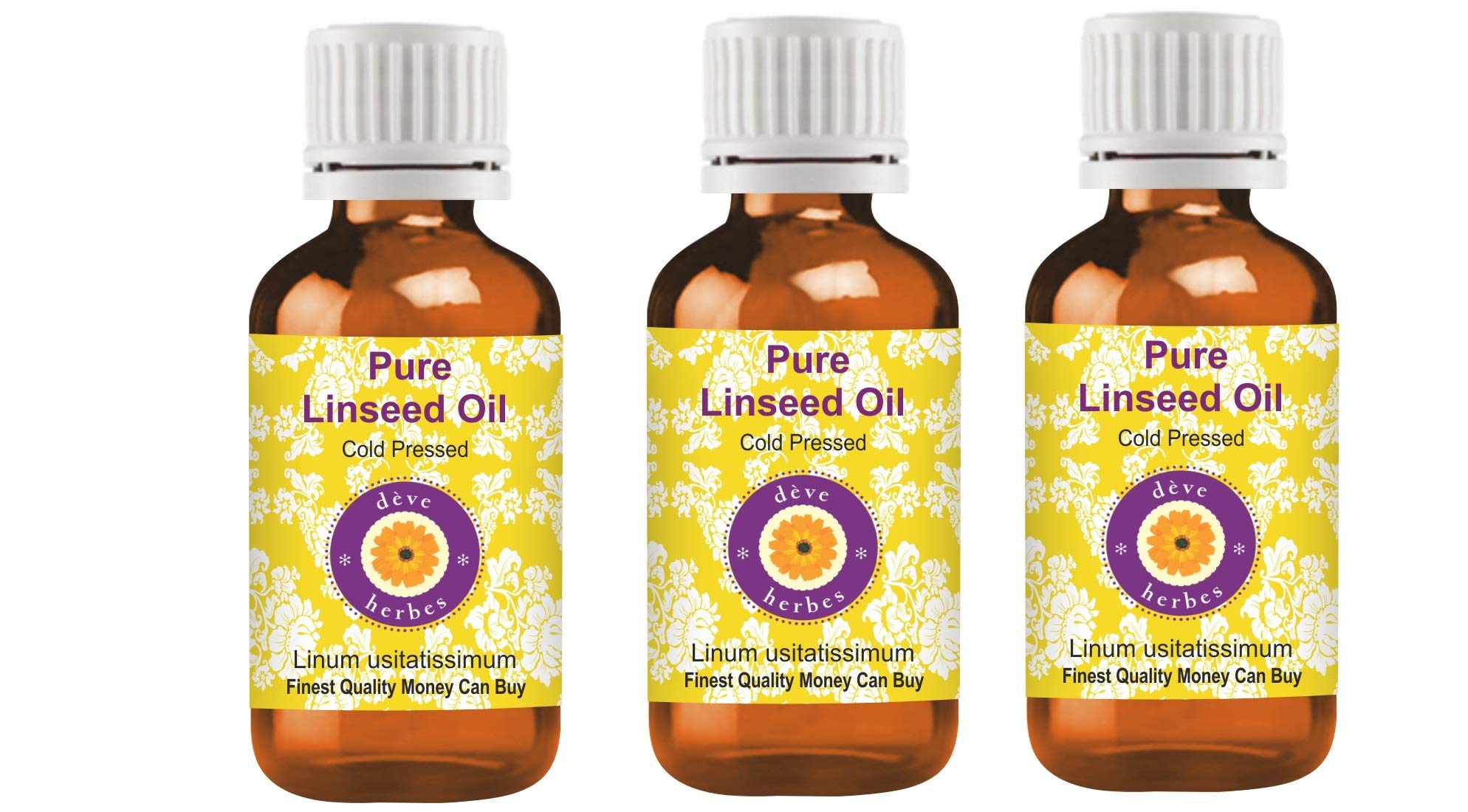d ve herbes Pure Linseed Oil (Linum usitatissimum) Cold Pressed (Pack of three) 100ml X 3 (10 oz)