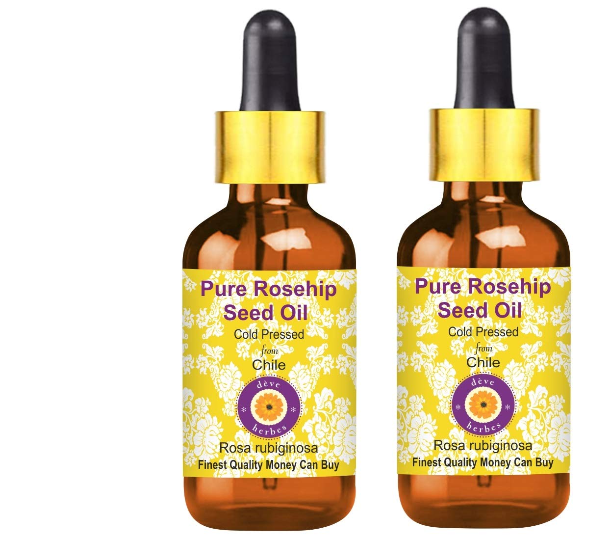 HOW TO USE: Cold Pressed or Carrier oils can be applied directly to skin. It is derived from plant sources. Use it alone or with other oils to nourish your skin. It can also be used to dilute essential oils to carry them into the skin. CAUTION: This product does not have a child safety cap. Keep away from children. AROMA: Carrier Oils are NOT aromatic oils. Most natural carrier oils have FAINT OR NO AROMA. We do not add synthetic aroma to make our oils attractive, unlike many other brands. Pure Rosehip Seed Oil is used for therapeutic purposes has very faint or no aroma. Tens of thousands of our customers have experienced its therapeutic benefits. Quantity - 100ml X 2 (6.76 oz) Container Type - Two High Quality Amber Glass Bottle of 100ml each with two Glass Dropper. Botanical Name - Rosa rubiginosa, 100 Pure, Natural, Undiluted, Premium, Therapeutic Grade Carrier Oil, Alcohol Free, Solvent Free, Vegan, Cruelty Free, Not Tested on Animals. FINEST QUALITY MONEY CAN BUY. 100 SATISFACTION PURITY GUARANTEE - We, the manufacturer, Deve Herbes, guarantee that our oils are pure natural. We offer 100 satisfaction guarantee on our products. If you are unsatisfied for any reason we will replace your product or refund your money. We believe our oils will impart lasting therapeutic benefits to you. We believe in our products have been offering 'No Questions Asked Money Back Guarantee' for the last 9 Years.
