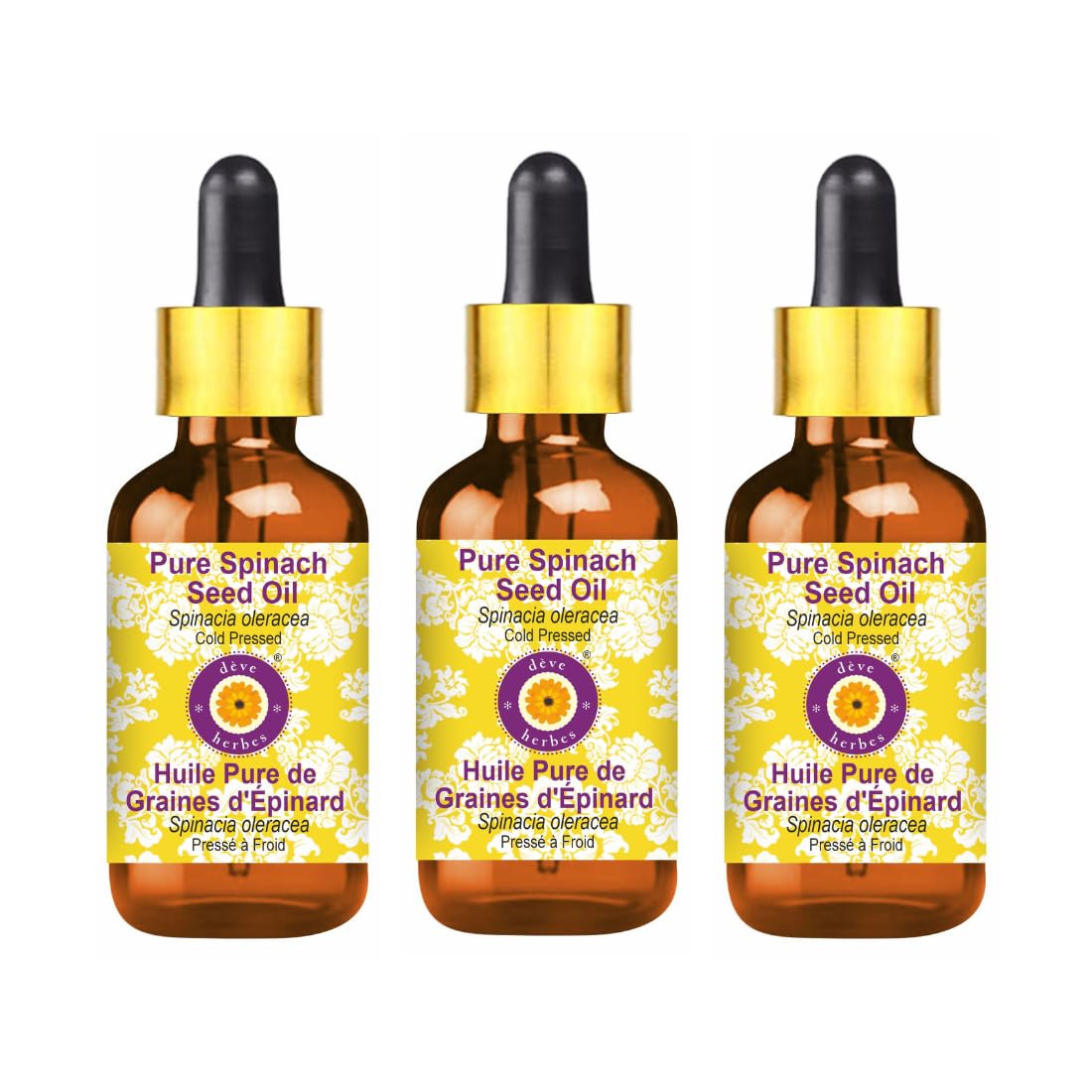 d ve herbes Pure Spinach Seed Oil (Spinacia oleracea) with Glass Dropper Cold Pressed (Pack of Three) 100ml X 3 (10 oz)