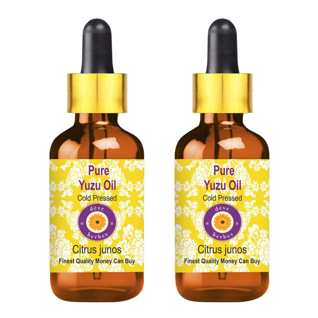 d ve herbes Pure Yuzu Oil (Citrus Junos) with Glass Dropper Cold Pressed (Pack of Two) 100mlx2 (6.76 oz)