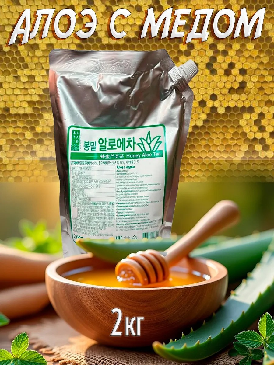 Мёд Алоэ "Алое Чай" - Натуральный Сироп для Ваших Любимых Напитков! Приветствуем вас в мире вкусных и полезных удовольствий с нашим медом алоэ "Алое Чай"! Это не просто мед, это настоящий концентрат вкуса и пользы в каждой банке! Ищете натуральный способ придать сладость вашим напиткам? Наш сироп – идеальная основа для освежающего лимонада, ароматного чая, оригинальных коктейлей и даже алкогольных и безалкогольных миксов! В чем преимущества нашего мёда алоэ? Без сахара! Наслаждайтесь сладким вкусом без лишних калорий! Отличный выбор для тех, кто следит за фигурой и предпочитает диетические продукты. Подходит для диабетиков (рекомендуем консультацию с врачом). Натуральный состав! Содержит экстракт алоэ вера (aloe vera), пчелиный мед, фруктозу, и немного соли для баланса вкуса. Никаких искусственных добавок! Универсальный продукт! Используйте как топпинг для мороженого, как пропитку для выпечки, добавляйте в десерты или просто наслаждайтесь вкусом с водой! Превратите обычную воду в питьевой нектар! Корейские продукты всегда отличаются высоким качеством! Наш мед алоэ - это настоящий корейский секрет бодрости и хорошего настроения! Отличный подарок! Стильная упаковка (прочная стеклобанка) делает наш продукт прекрасным подарочным вариантом для близких и друзей. Большой объем! В каждой банке - 1 кг (1000 г) / 1л вкуснейшего медового пюре с алоэ, хватит надолго! Возможно приобретение объемом 2000 грамм. Польза алоэ вера и меда для здоровья – известна веками! Это не только вкусно, но и полезно! Подходит для приготовления освежающего Aloe tea (Алое Чай) Забудьте про обычное варенье и джемы! Попробуйте наш мед алоэ "Алое Чай" и откройте для себя новый мир вкусняшек! Это не просто товары, это настоящее удовольствие в каждой ложке!