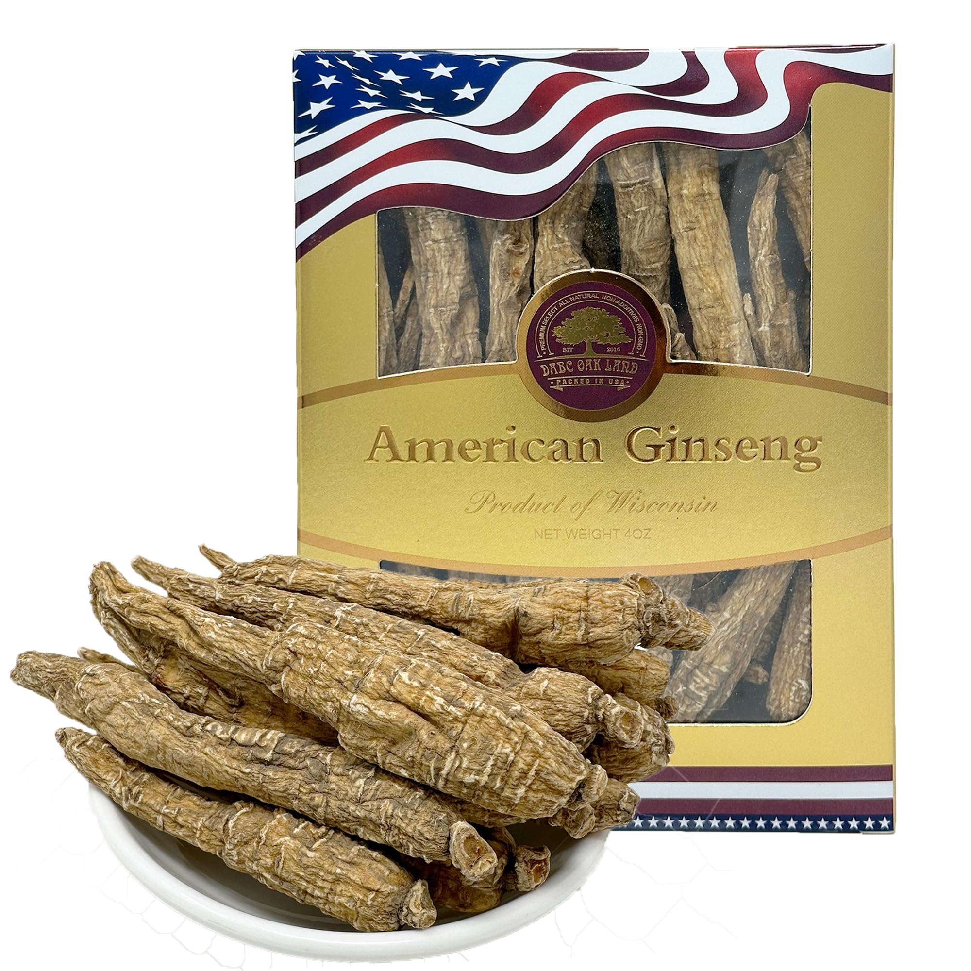 DABC OAK LAND 4OZ 113gm/box Hand-Selected American Wisconsin Farmed Ginseng Root | Long Large Branch |Cultivated American Wisconsin Ginseng WI 110#L Box (4OZ 113g/Box)