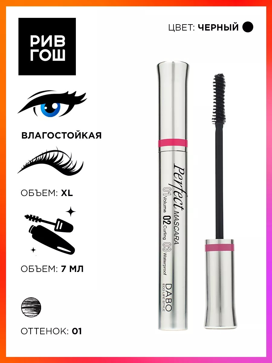 Влагостойкая тушь позволяет создать выразительные, густые и объемные ресницы. Содержит специальные полимеры, которые покрывают каждую ресничку, увеличивая их толщину и длину. Текстура наносится равномерно и без склеивания, не осыпается в течение дня. Кисточка обладает удобной формой, позволяющей прокрасить даже самые мелкие реснички на уголках глаз. Perfect Mascara - идеальное решение для создания эффектного макияжа в любое время дня или вечера. Цвет: черный. Тушь для ресниц увеличивающая объем У нас Вы всегда сможете подобрать женскую и мужскую парфюмерию, декоративную косметику, а так же уходовые средства для волос, тела и лица. РИВ ГОШ вдохновляет дарить подарки каждый день. Погрузитесь в мир безупречного взгляда с нашей удивительной тушью для ресниц, которая станет вашим незаменимым помощником в создании выразительного макияжа. Уникальная формула обеспечивает не только удлинение, но и отличный объем, что сделает ваши ресницы более густыми и длинными. Если вы мечтаете о идеальном эффекте накладных ресниц, то данная тушь именно то, что вам нужно. С помощью этой туши вы сможете создать великолепный взгляд, который будет привлекать внимание. Ее особая текстура позволяет легко наносить и распределять средство, не оставляя комочков. Не упустите возможность подчеркнуть свою индивидуальность.
