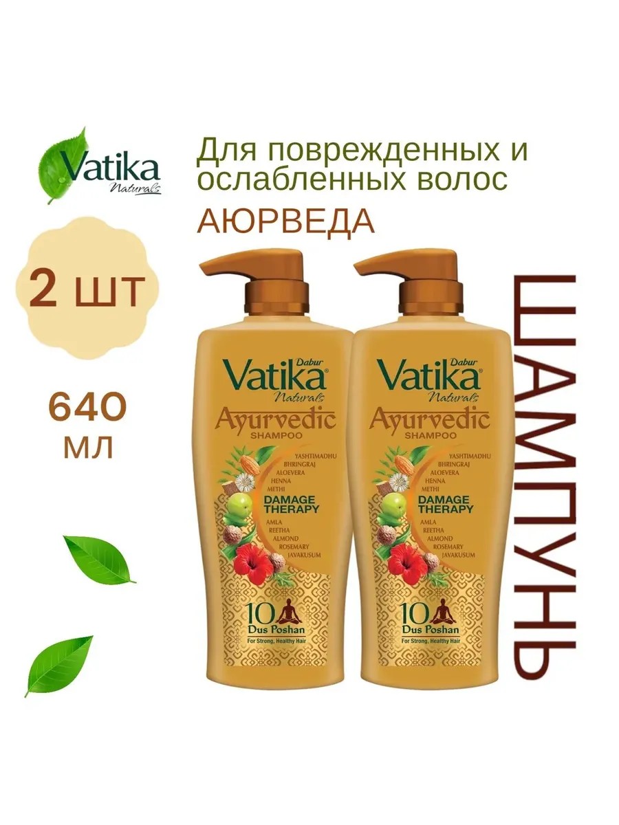 Vatika Ayurvedic Shampoo Damage Therapy - это эффективное средство для очищения, питания и восстановления поврежденных волос. Аюрведический шампунь на основе десяти природных ингредиентов при регулярном применении поможет восстановить и сохранить красоту ваших волос. Он обладает кондиционирующим эффектом, защищает волосы от повреждений, делает их крепкими и здоровыми. Vatika Ayurvedic Shampoo Damage Therapy содержит натуральные экстракты 10 аюрведических растений - яштимадху, бринградж, алоэ вера, хна, пажитник, амла, ритха, миндаль, розмарин, джавакусум.