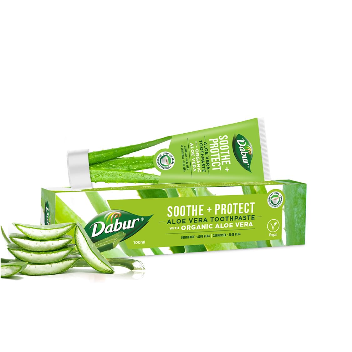 Dabur Organic Aloe Vera Toothpaste is a unique blend of nature's finest and most powerful ingredients, including aloe vera, Al-Arak, and tea tree. Aloe vera is widely known as a natural soothing agent for gum problems. Dabur Organic Aloe Vera Toothpaste helps soothe inflamed gums, protect teeth from cavities, and keep teeth and gums healthy and strong. Dabur Toothpaste – Nature's Ultimate Blend. INGREDIENTS INGREDIENTS: Aqua, Sorbitol, Silica, PEG-32, Sodium Cocosulfate, Aroma (Flavor), Aloe barbadensis (Aloe vera), Trisodium Phosphate, Xanthan Gum, Salvadora Persica (Miswak) Extract DIRECTIONS Follow your daily toothpaste routine. Brush twice a day, once in the morning and once before bed. SAFETY WARNING For external use only. Avoid contact with eyes. Keep away from open flames or direct heat sources. See moreFree from harmful substances: Dabur Aloe Vera toothpaste with organic aloe vera is free from artificial ingredients. It is certified vegan. It contains no fluoride, no sodium lauryl sulfate (SLS), no carrageenan, no gluten, no harsh abrasives, no triclosan, no artificial colors or flavors, yet it tastes and foams wonderfully. Safe for enamel: Dabur toothpaste with organic aloe vera is safe for enamel and can be used every day for a noticeably whiter smile. Antibacterial and anti-inflammatory: The anti-inflammatory and antibacterial properties of aloe vera extract help remove darkening or stains from teeth. Oral cleanser: This herbal toothpaste with aloe vera helps fight plaque, bad breath, and unhealthy gums, resulting in strong teeth. The antioxidant properties of aloe vera help soothe gum inflammation. Key organic ingredients: Dabur Aloe Vera toothpaste with organic aloe vera is formulated with aloe vera extracts, which help control cavity-causing bacteria and maintain oral hygiene.Dabur Dentifrice à l'aloe vera bio - Aide à prévenir les caries - Fabriqué avec des extraits de plantes - 100 gDESCRIPTION DU PRODUIT DESCRIPTION DU PRODUIT Dabur Le dentifrice à l'aloe vera à l'aloe vera bio est un mélange unique d'ingrédients les plus fins et les plus puissants de la nature tels que l'aloe vera, Al-Arak et l'arbre à thé. L'aloe vera est largement connu pour être un agent apaisant naturel pour les problèmes de gencives. Le dentifrice Dabur à l'aloe vera à l'aloe vera bio aide à apaiser les gencives enflammées, à protéger les dents des caries et à garder les dents et les gencives saines et fortes. Dabur Dentifrice – Mélange ultime de nature. INGRÉDIENTS INGRÉDIENTS : Aqua, Sorbitol, Silica, PEG-32, Sodium Cocosulfate, Aroma (Flavor), Aloe barbadensis (Aloe vera), phosphate trisodique, gomme xanthane, extrait de Salvadora Persica (Miswak) MODE D'EMPLOI En ligne avec l'utilisation quotidienne de dentifrice. Brossez deux fois par jour, une fois le matin et une fois avant d'aller au lit. AVERTISSEMENT DE SÉCURITÉ Usage externe uniquement. Évitez tout contact avec les yeux. Tenir à l'écart des flammes nues ou des sources de chaleur directes. Voir plusSans substances nocives : le dentifrice Dabur Aloe Vera à l'aloe vera bio est exempt d'ingrédients artificiels. Il est certifié végétalien. Il ne contient pas de fluor, pas de laurylsulfate de sodium (SLS), pas de carraghénane, pas de gluten, pas d'abrasifs agressifs, pas de triclosan, pas de colorants artificiels ou pas d'arômes artificiels, et pourtant a un goût et une mousse merveilleux. Sans danger pour l'émail : le dentifrice Dabur à l'aloe vera bio est sans danger pour l'émail et peut être utilisé tous les jours pour un sourire visiblement plus blanc. Antibactérien et anti-inflammatoire : les propriétés anti-inflammatoires et antibactériennes de l'extrait d'aloe vera aident à éliminer l'obscurité ou les taches des dents. Nettoyant buccal : le dentifrice à base de plantes à l'aloe vera aide à lutter contre la plaque dentaire, la mauvaise haleine et les gencives malsaines donnant des dents fortes. La propriété antioxydante de l'aloe vera aide à soulager l'inflammation des gencives. Ingrédients clés biologiques : le dentifrice Dabur Aloe vera à l'aloe vera bio est formulé avec les extraits d'aloe vera qui aide à contrôler les bactéries qui causent les caries et à maintenir l'hygiène bucco-dentaire.