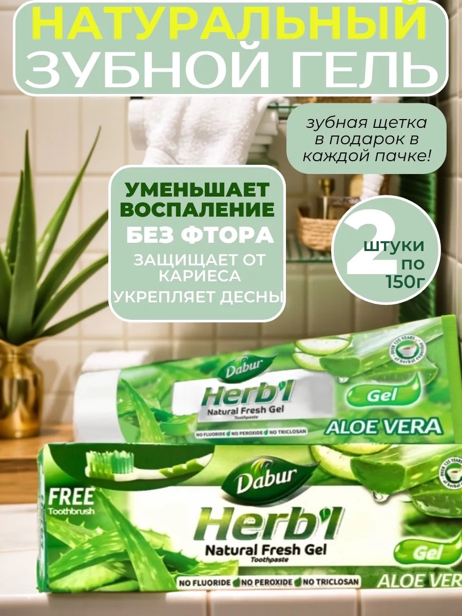 Dabur Зубной гель с экстрактом Алоэ Вера + зубная щетка, 2 шт.