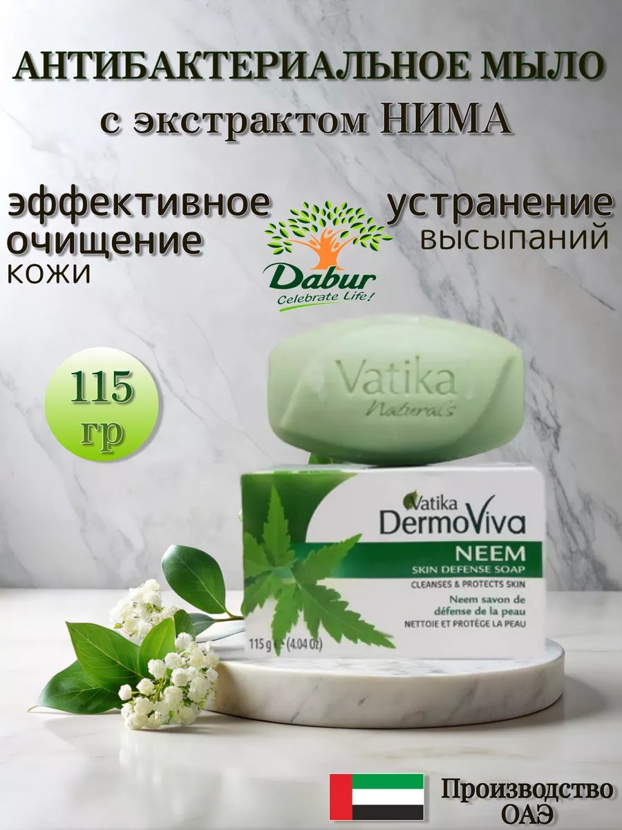 Антибактериальное мыло для лица и тела Dabur Vatika Neem тщательно очищает кожу и избавляет от воспалений. Это мыло - отличное средство от прыщей. Создано для бережного очищения и ухода за проблемной кожей. Мыло Ним активно борется с бактериями, тем самым избавляя вашу кошу кожу от таких проблем как высыпания, угри и другие воспаления. Его также можно использовать в комплексе с другими препаратами для лечения псориаза, нейродермита и других кожных заболеваний. Мыло Дабур с экстрактом Нима питает кожу входящими в свой состав полезными веществами, смягчает ее и контролирует водный баланс. Благодаря своему составу мыло с нимом-это природный антибиотик и очень сильный антисептик. При его регулярном использование вы сможете наблюдать как ваша кожа станет более чистой и гладкой. Исчезнут неприятные прыщи и другие воспаления и появится здоровый блеск. Если вы ищете натуральное и эффективное мыло, то мыло с экстрактом дерева ним - идеальный вариант для вас! Состав:Sodium Palmilate, Sodium Palm Kernelate, Water, Perfume, Titanium Dioxide, Glycerin, Preservative, Milk Cream.