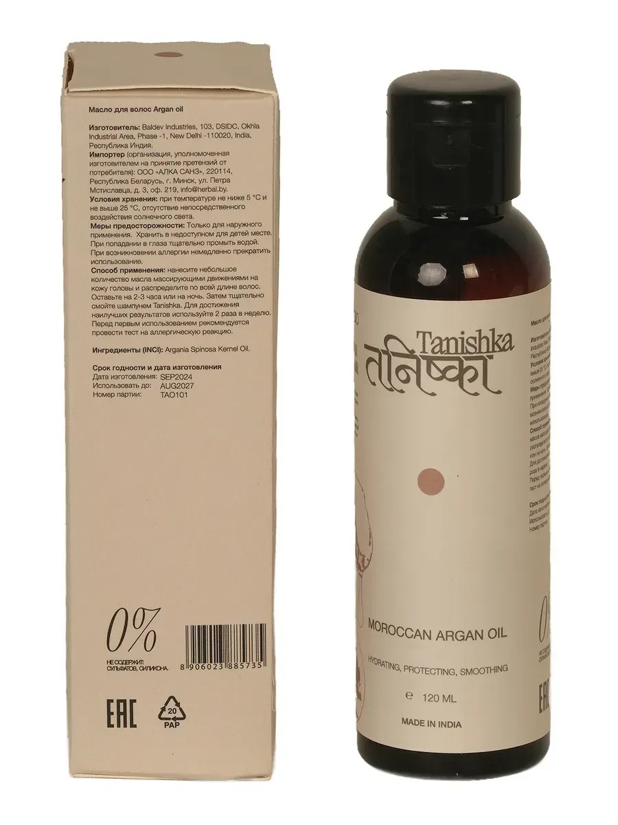 Argan hair oil moisturizes, softens, stimulates growth, stops hair loss, and strengthens roots. It protects against UV rays and heat, and restores hair after frequent coloring and bleaching. It acts as a conditioner without weighing hair down, making it sticky, or leaving it greasy. Argan perfectly moisturizes and nourishes hair, roots, and scalp, improving their structure and adding a beautiful shine. It combats dandruff, dryness, and brittleness, softens, and eliminates the "wire" effect. The oil stops hair loss and stimulates active growth. Suitable for all hair types. Directions: Add a few drops to shampoo, use as a mask, or massage into scalp before bed, and wash your hair in the morning.